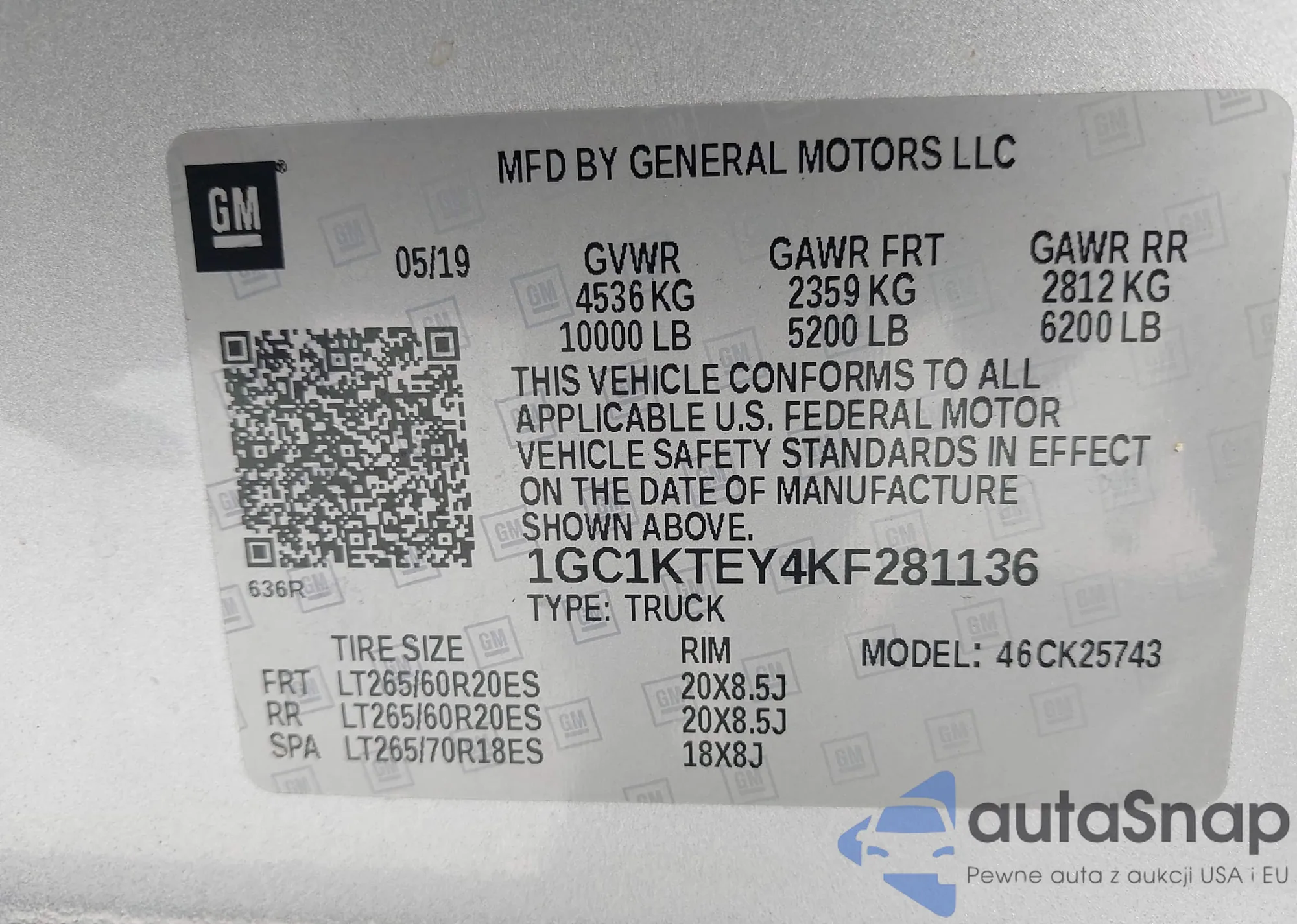 VIN: 1GC1KTEY4KF281136