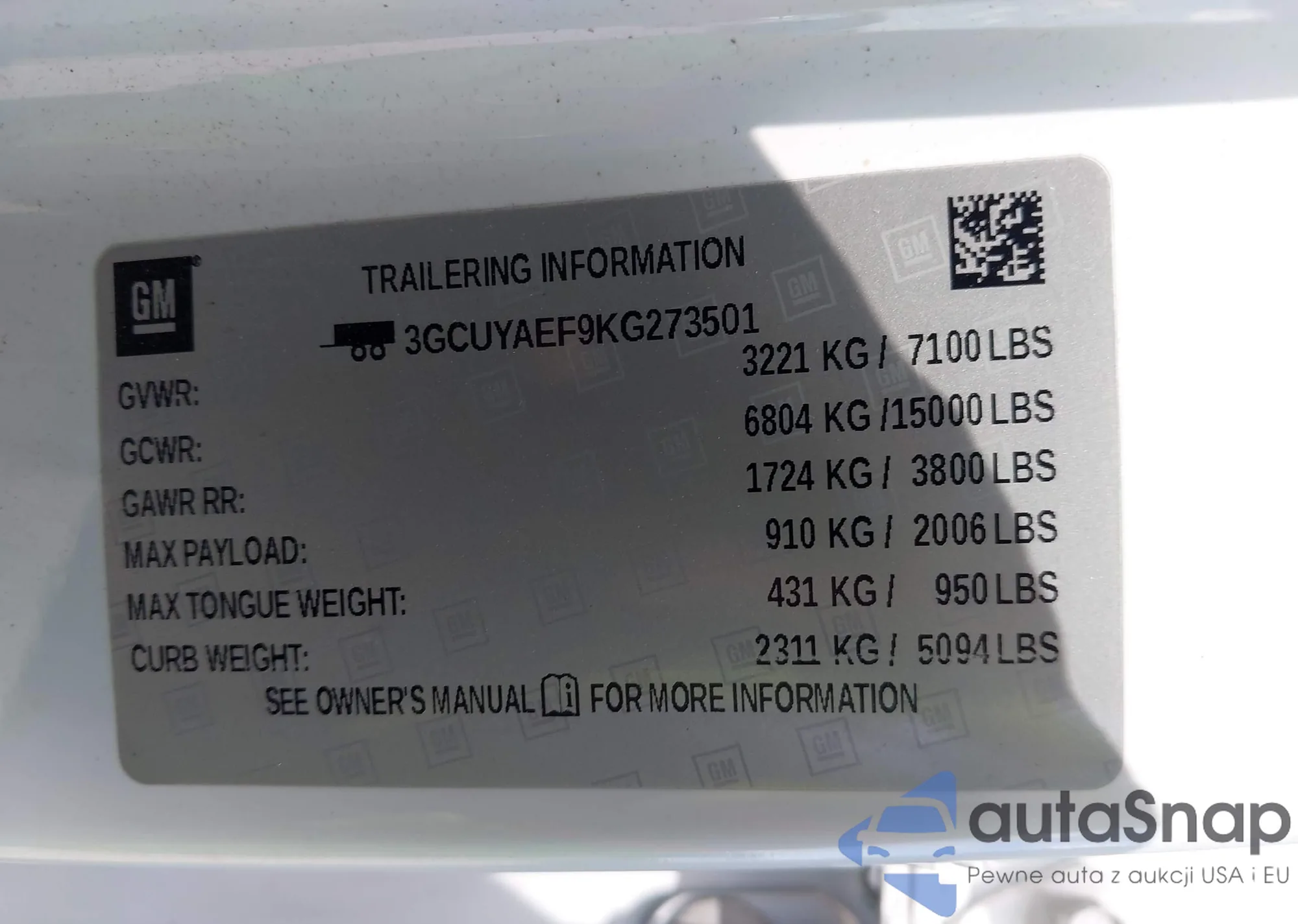 VIN: 3GCUYAEF9KG273501