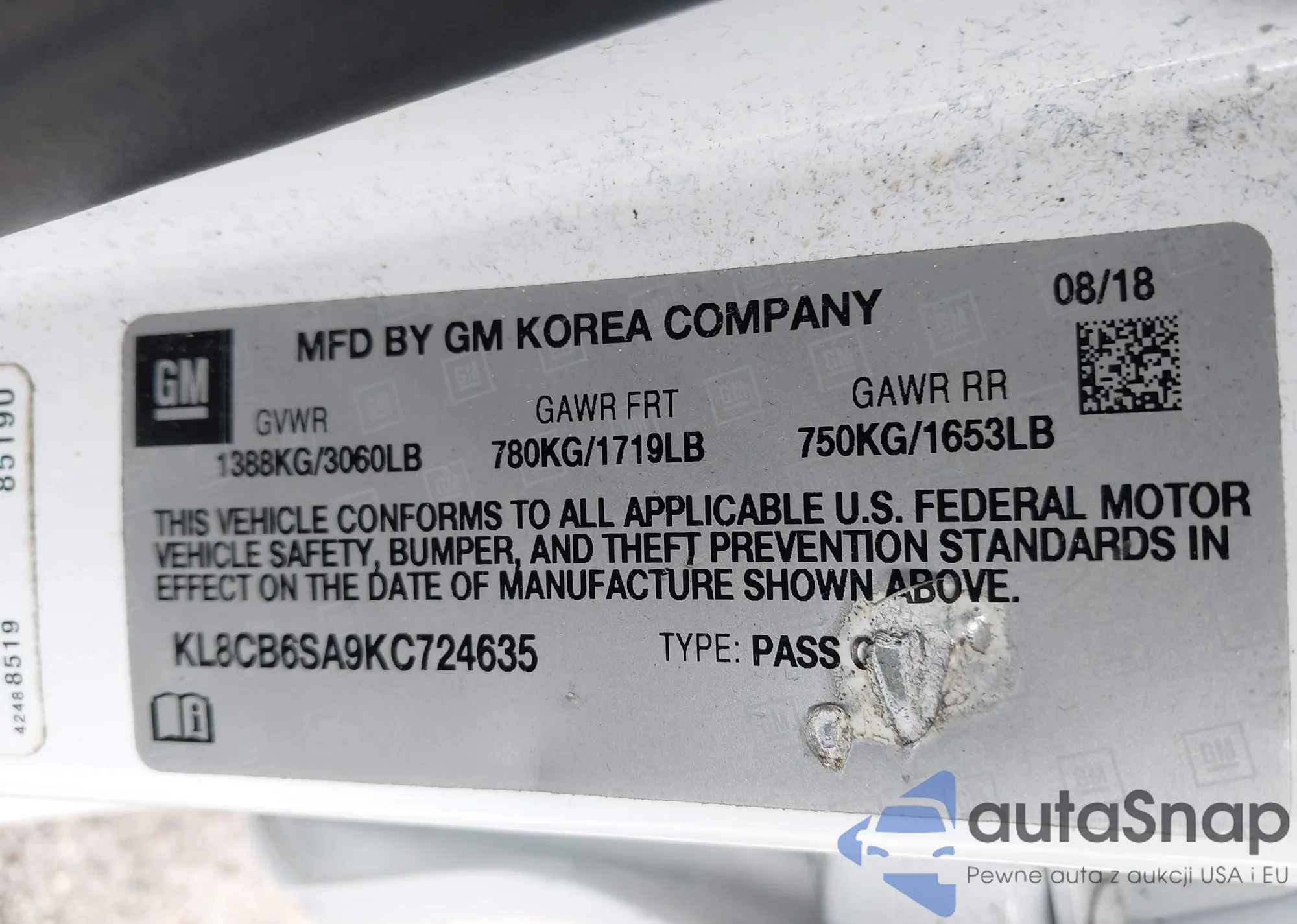 VIN: KL8CB6SA9KC724635