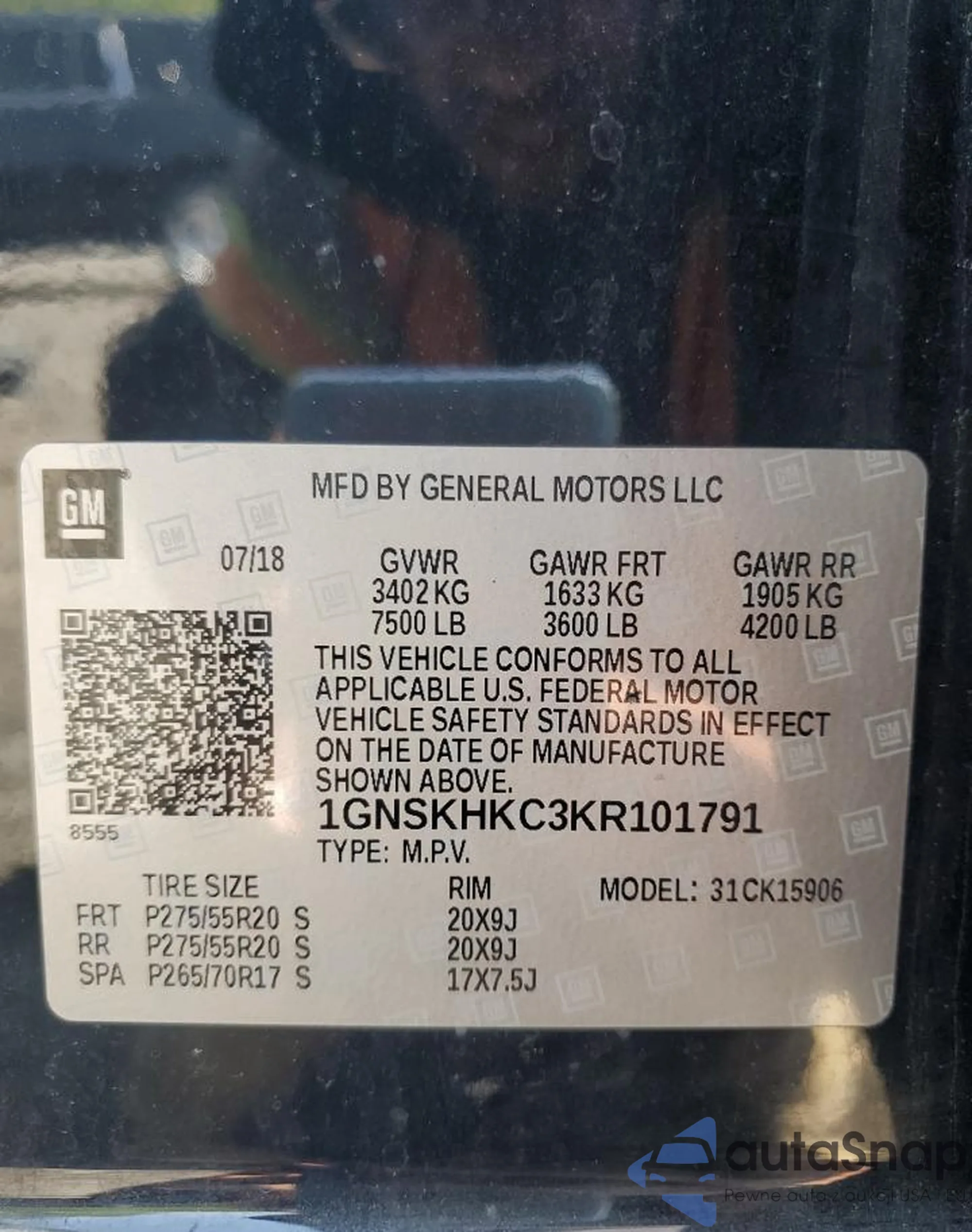 VIN: 1GNSKHKC3KR101791