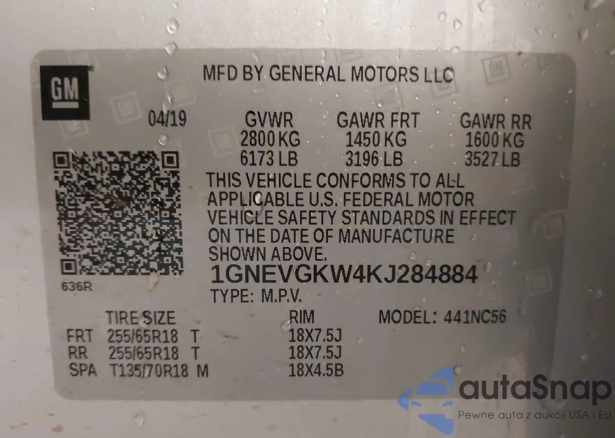 VIN: 1GNEVGKW4KJ284884