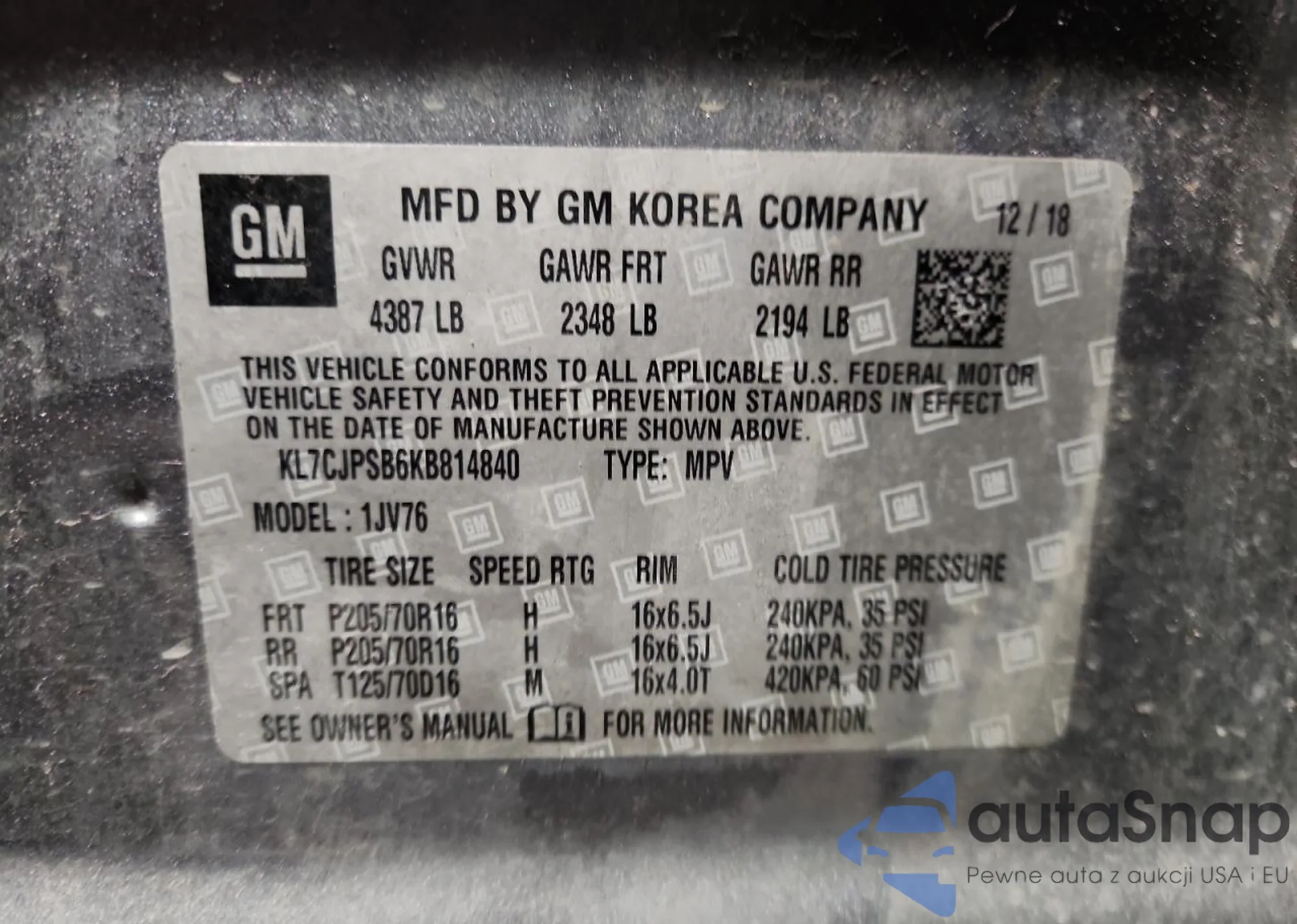 VIN: KL7CJPSB6KB814840