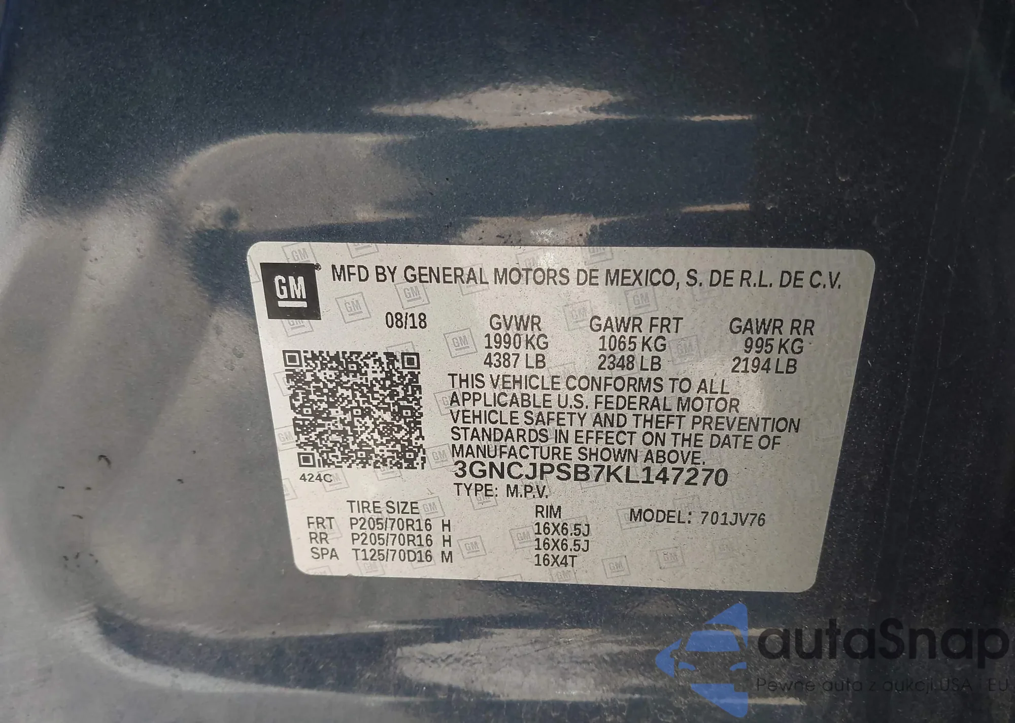 VIN: 3GNCJPSB7KL147270