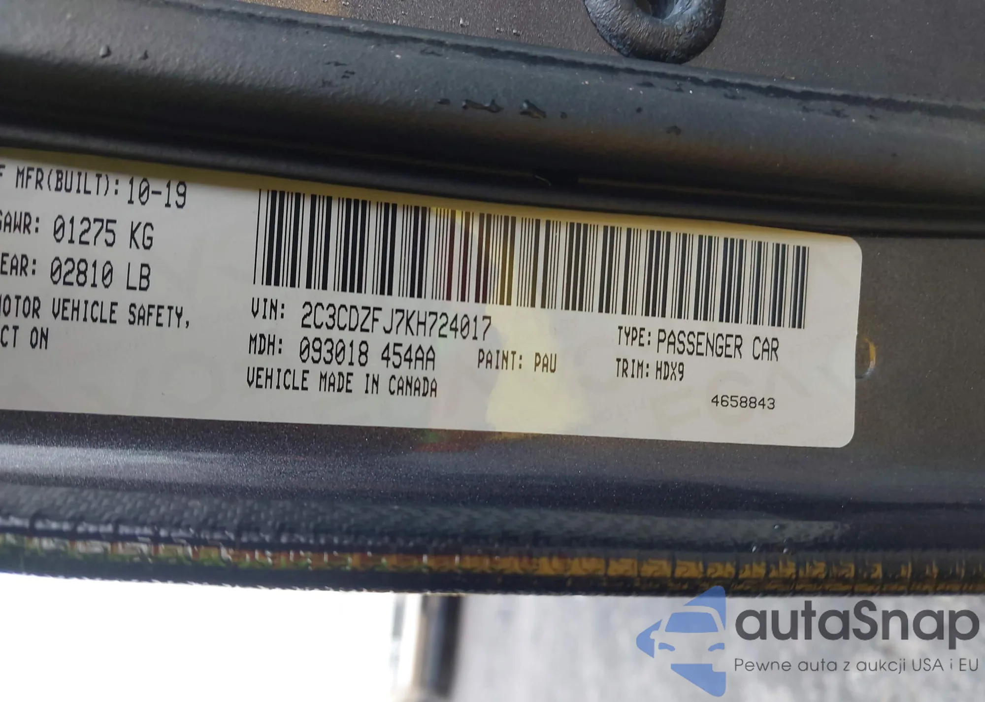 • VIN: 2C3CDZFJ7KH724017