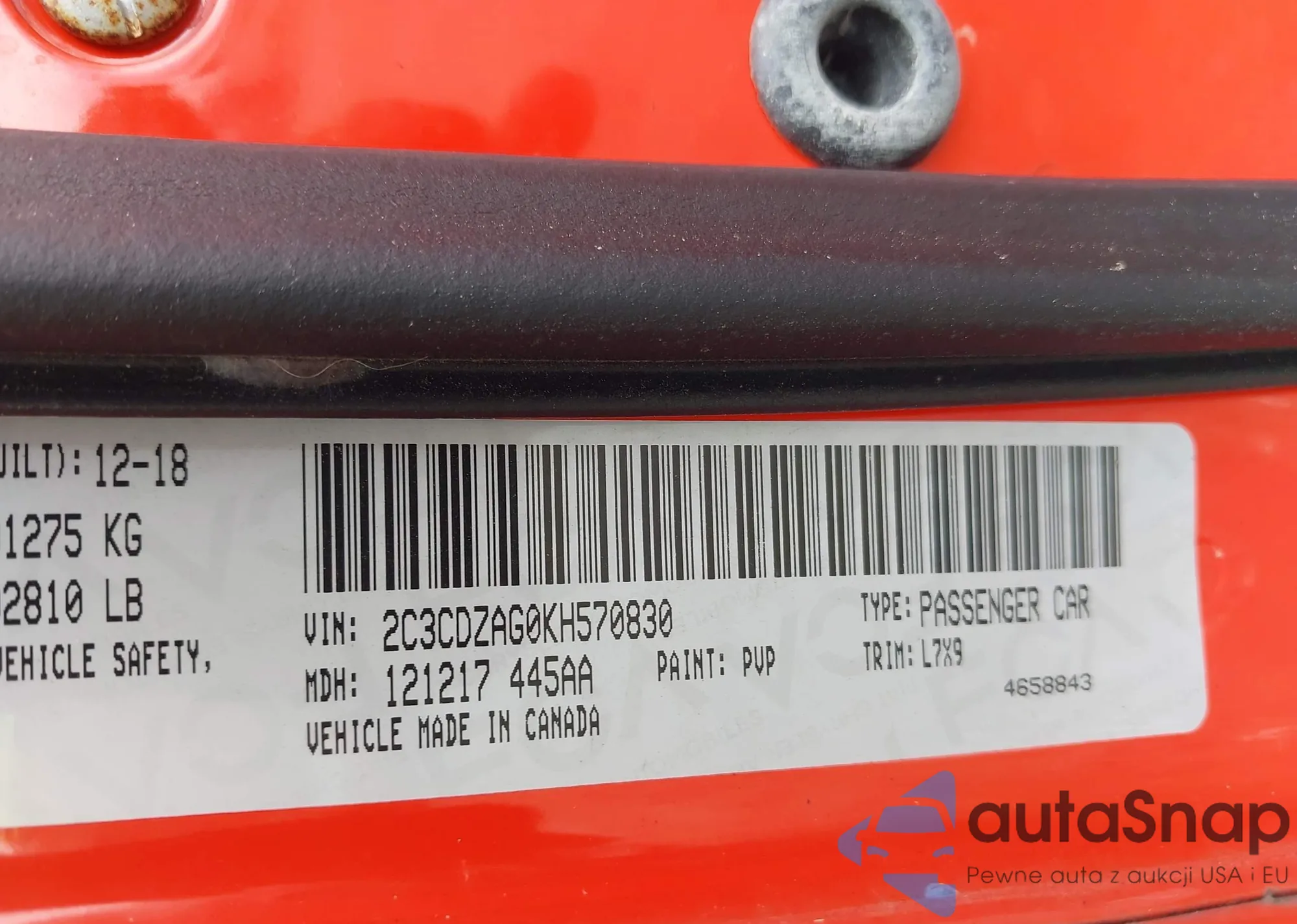 VIN: 2C3CDZAG0KH570830
