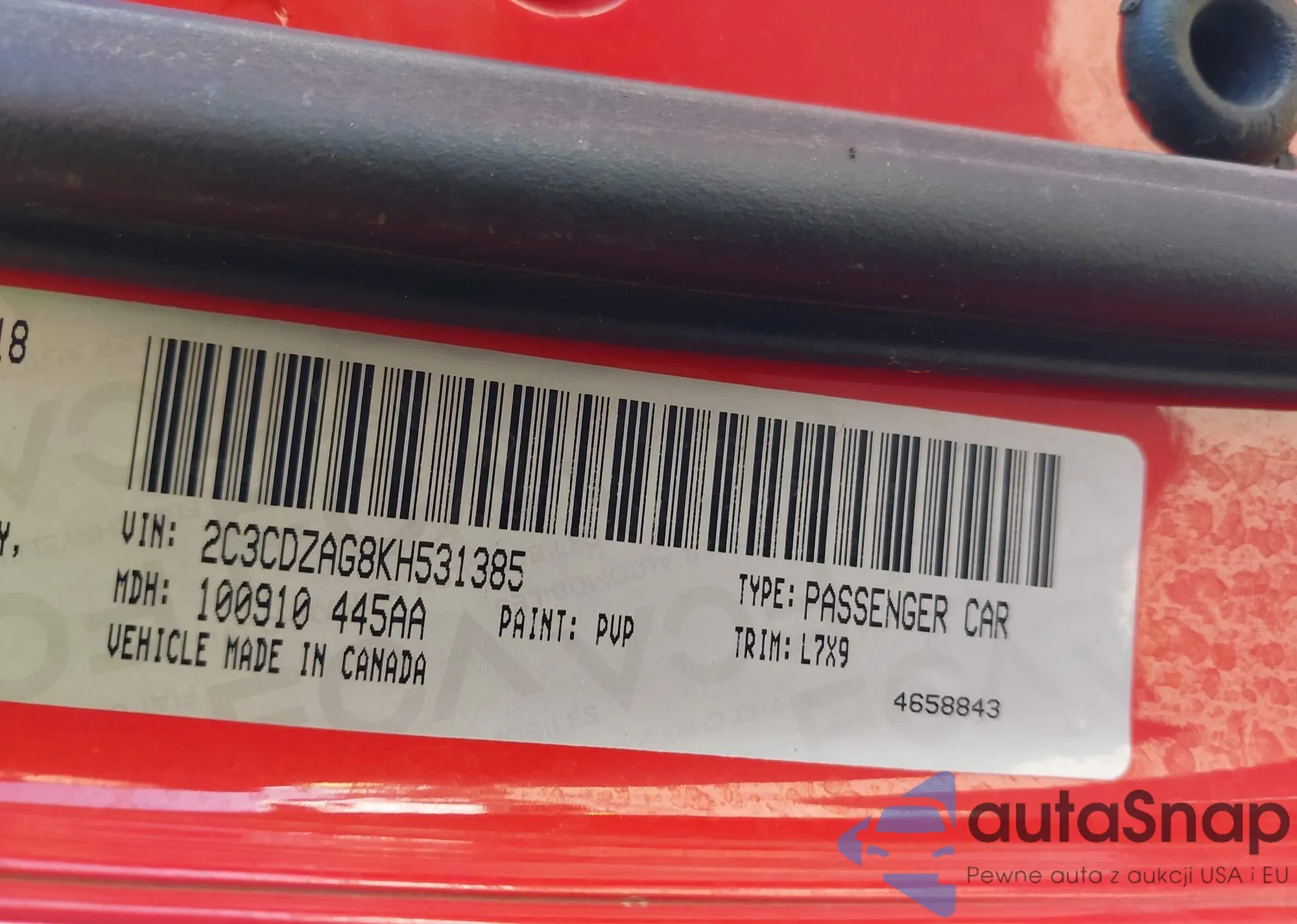• VIN: 2C3CDZAG8KH531385