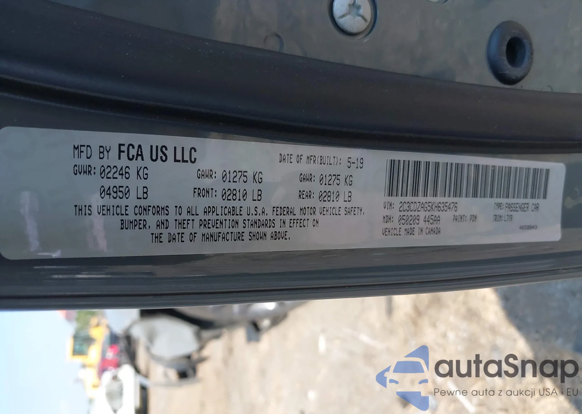 VIN: 2C3CDZAG5KH635476