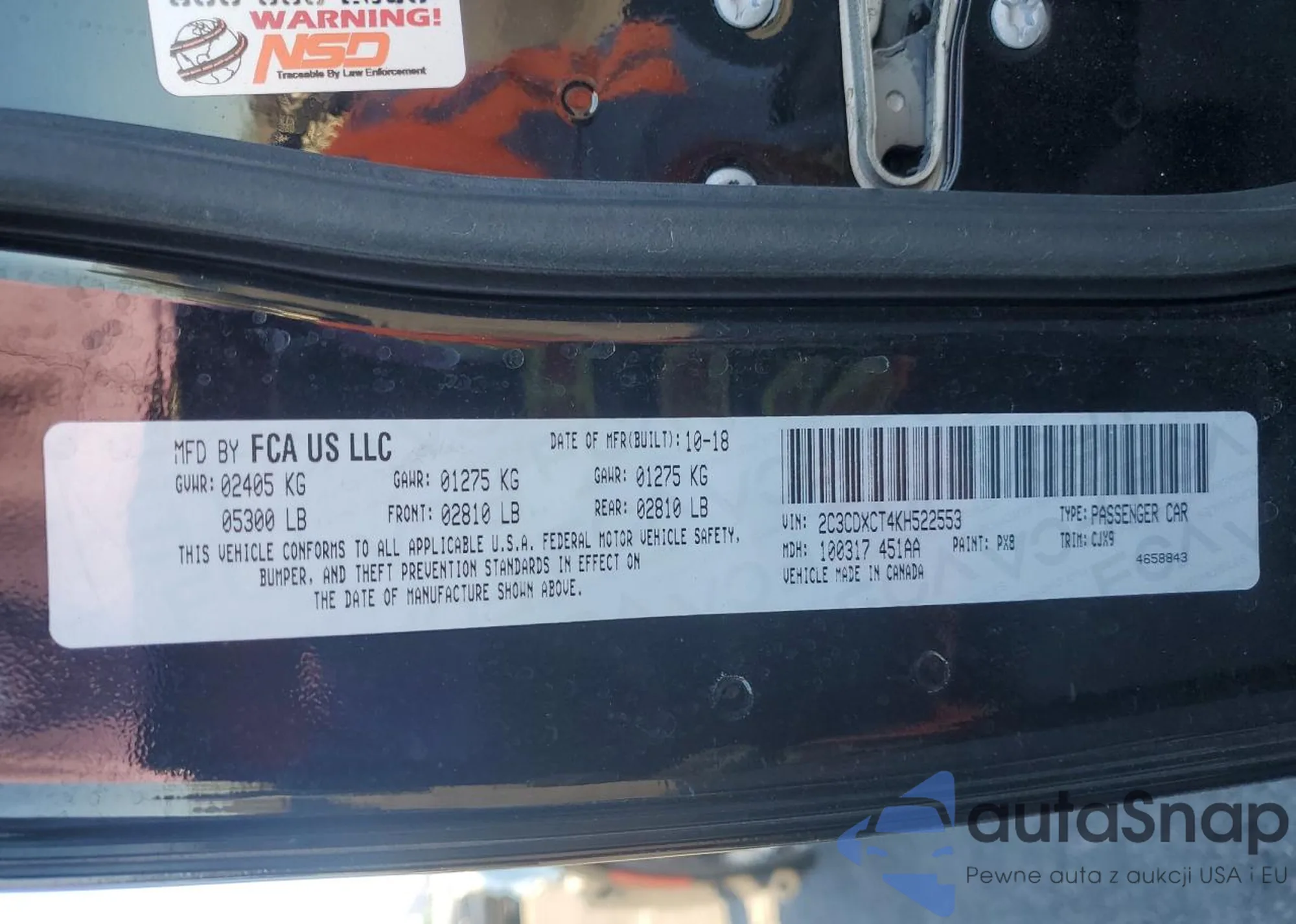 VIN: 2C3CDXCT4KH522553
