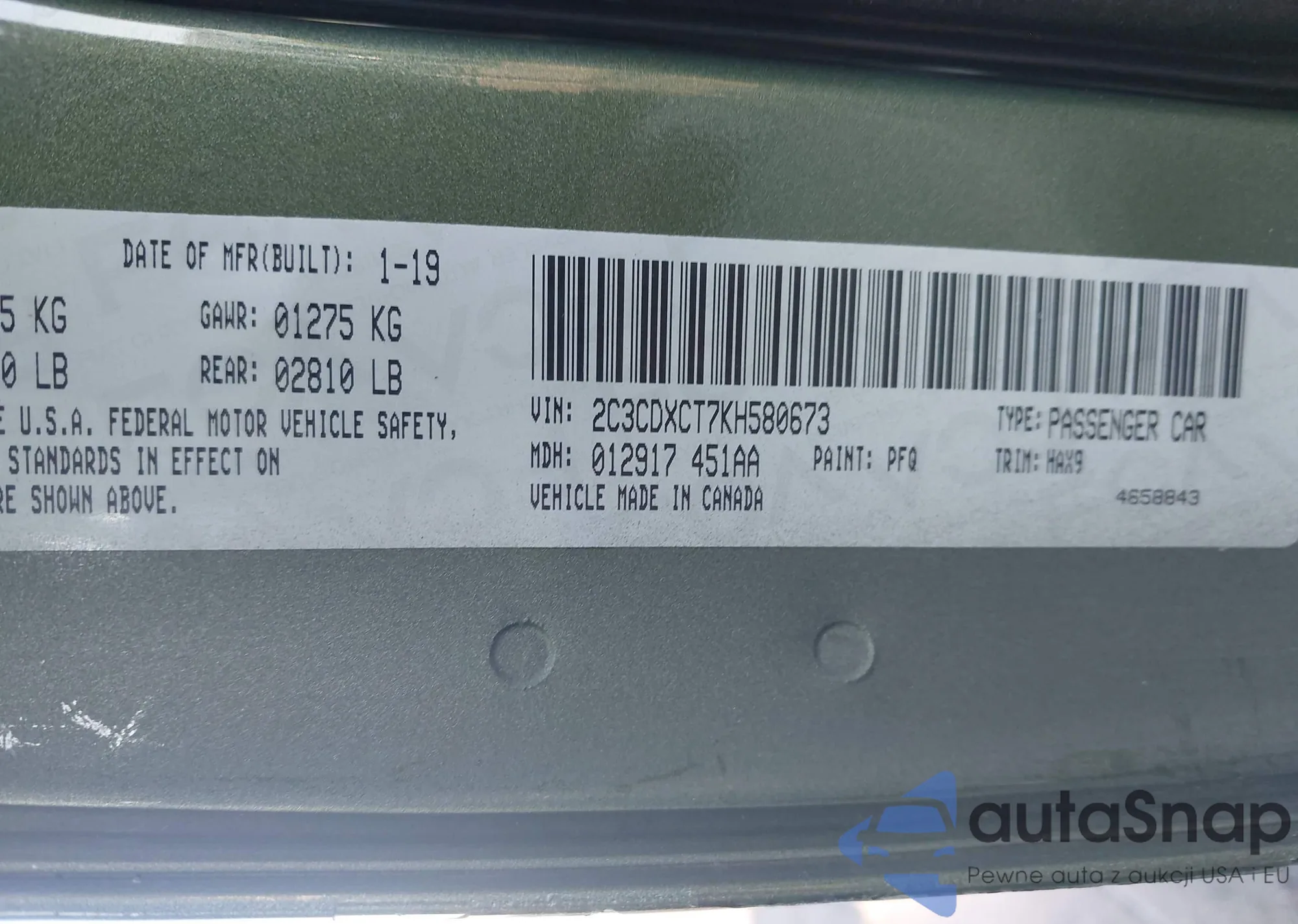 VIN: 2C3CDXCT7KH580673