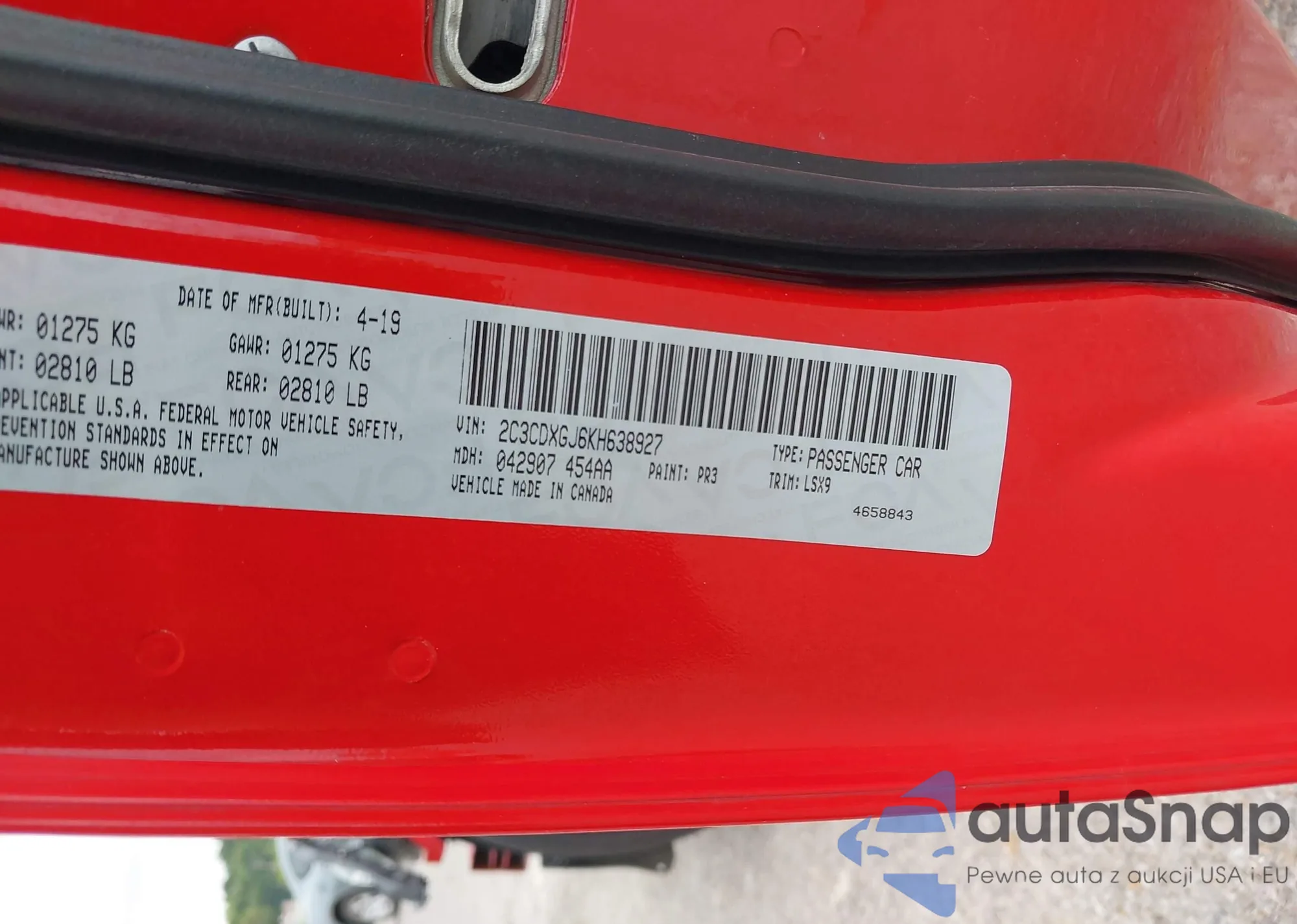 VIN: 2C3CDXGJ6KH638927