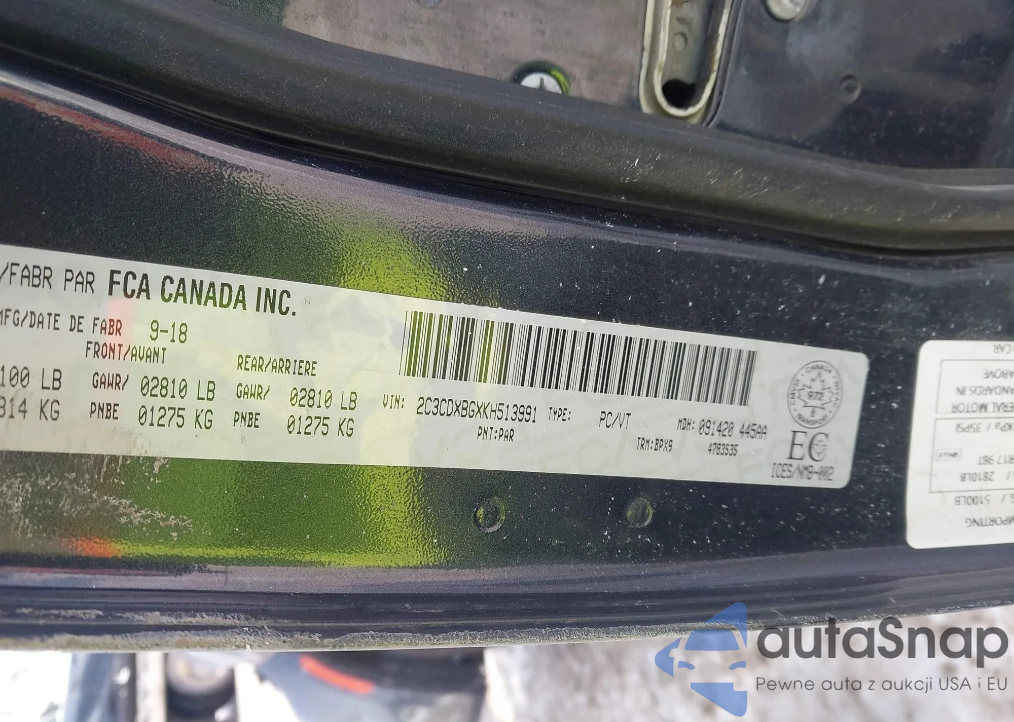 • VIN: 2C3CDXBGXKH513991