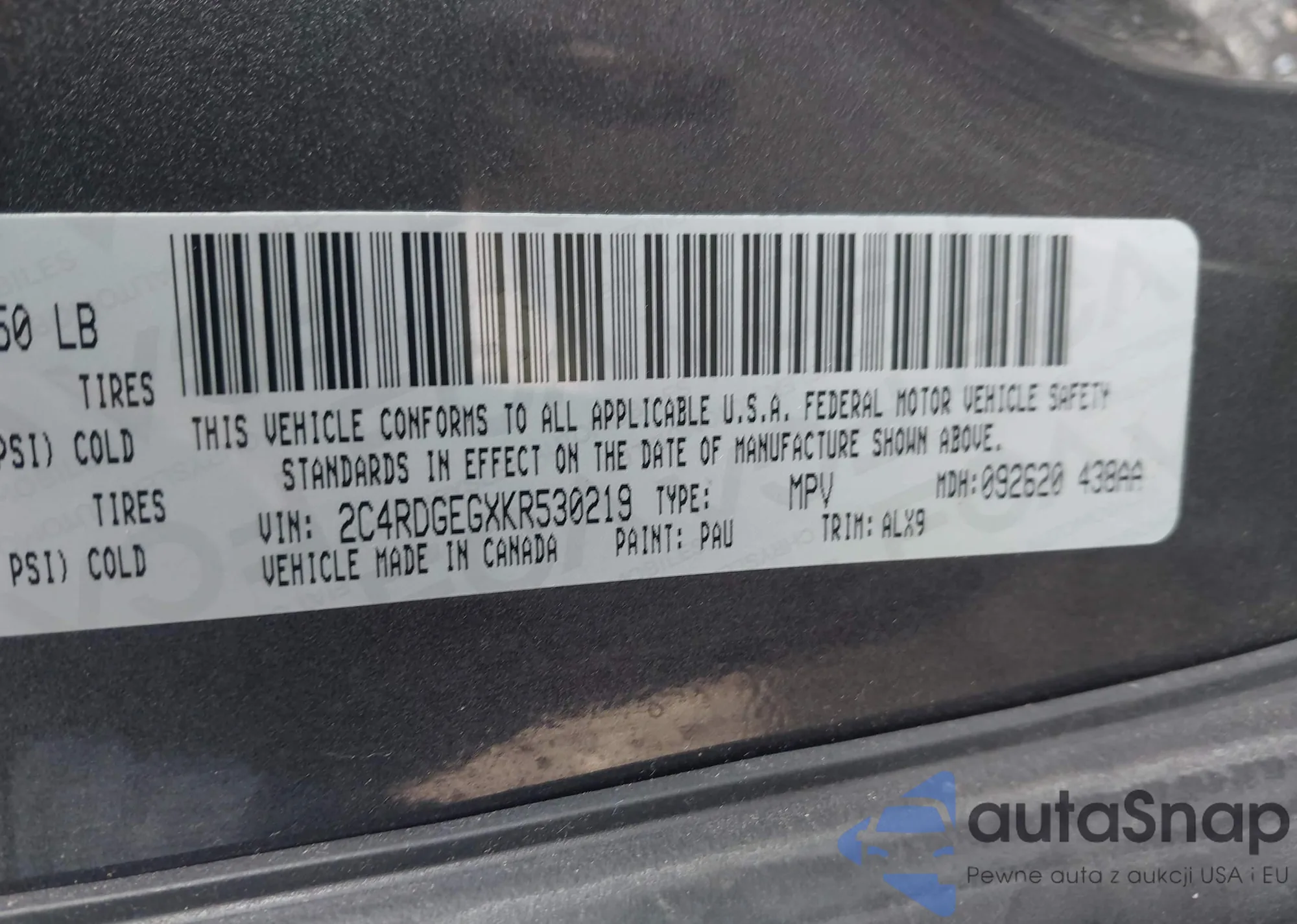 VIN: 2C4RDGEGXKR530219
