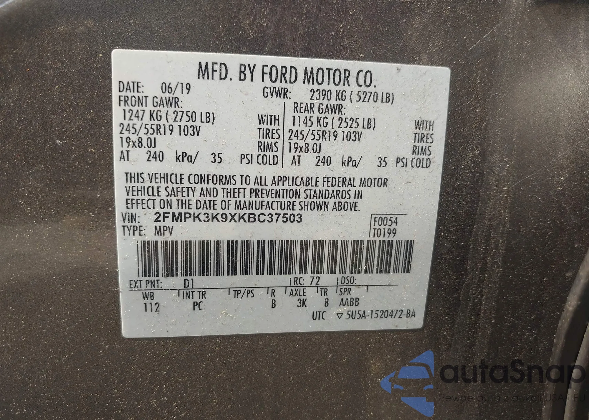 VIN: 2FMPK3K9XKBC37503