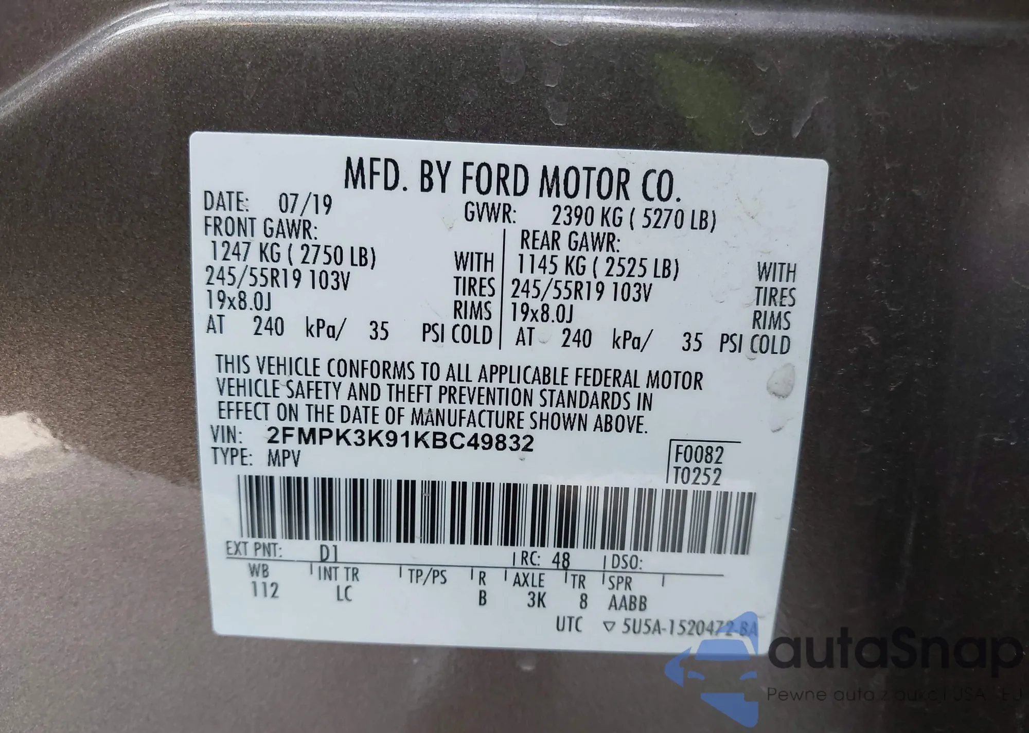 VIN: 2FMPK3K91KBC49832