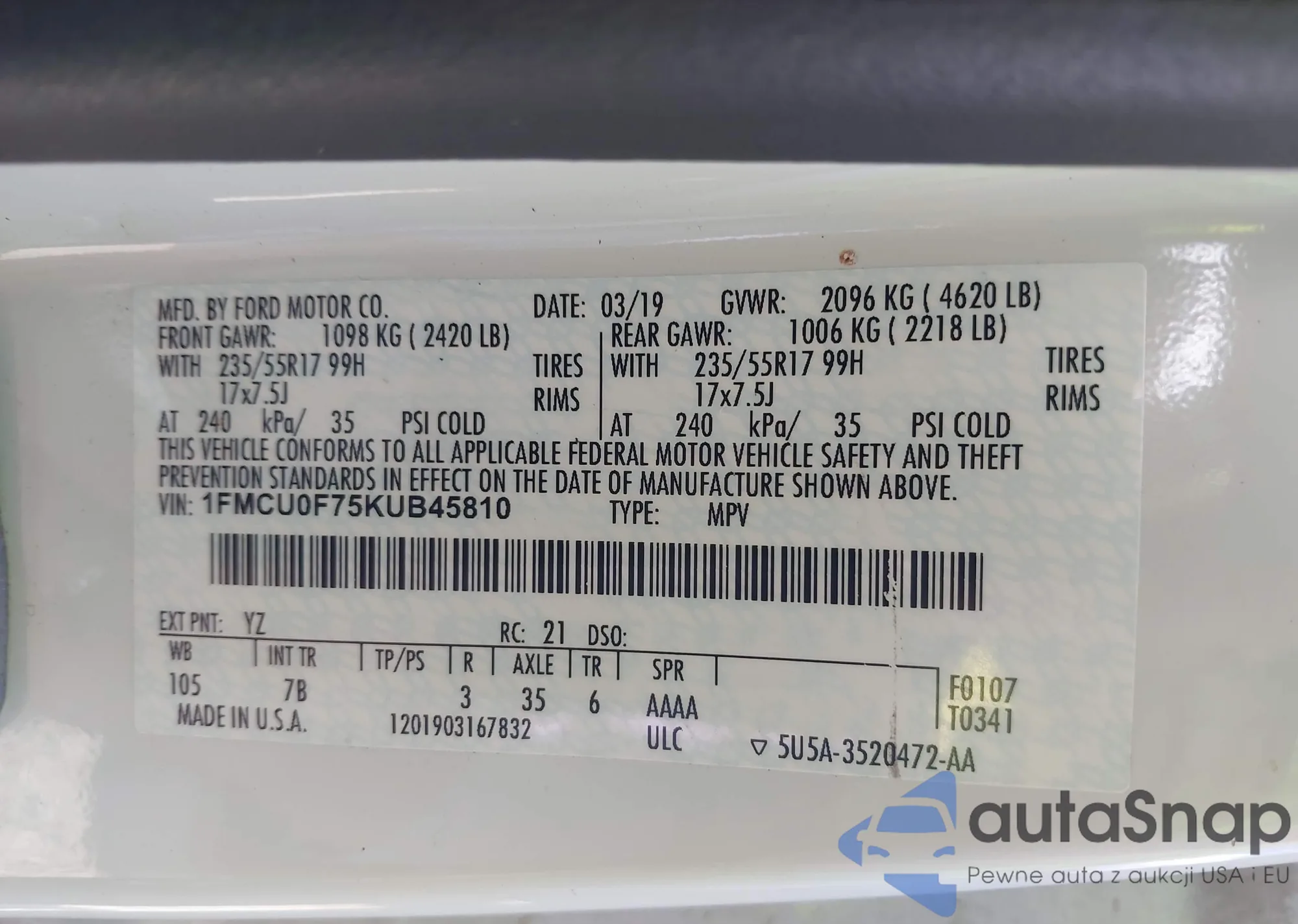 VIN: 1FMCU0F75KUB45810