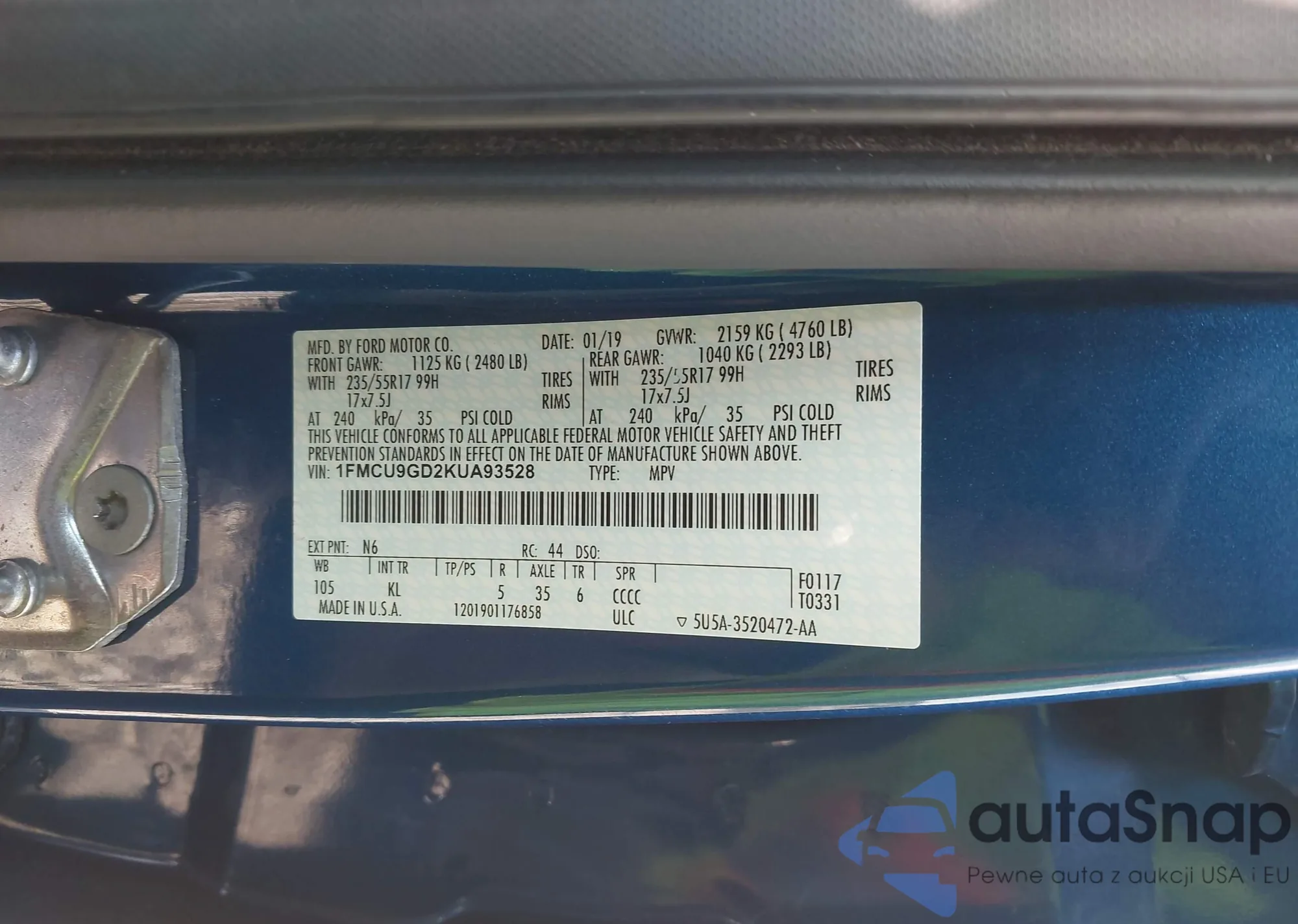 VIN: 1FMCU9GD2KUA93528