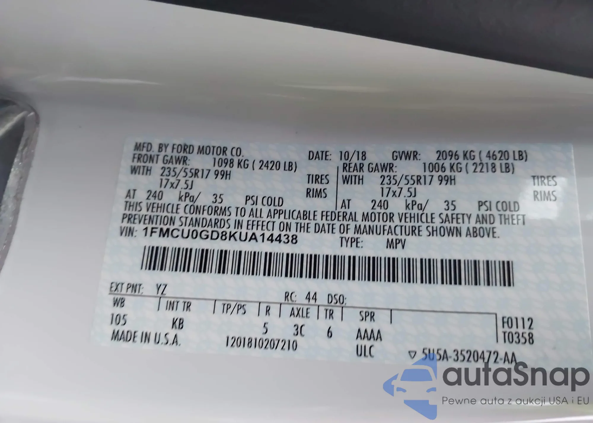 VIN: 1FMCU0GD8KUA14438