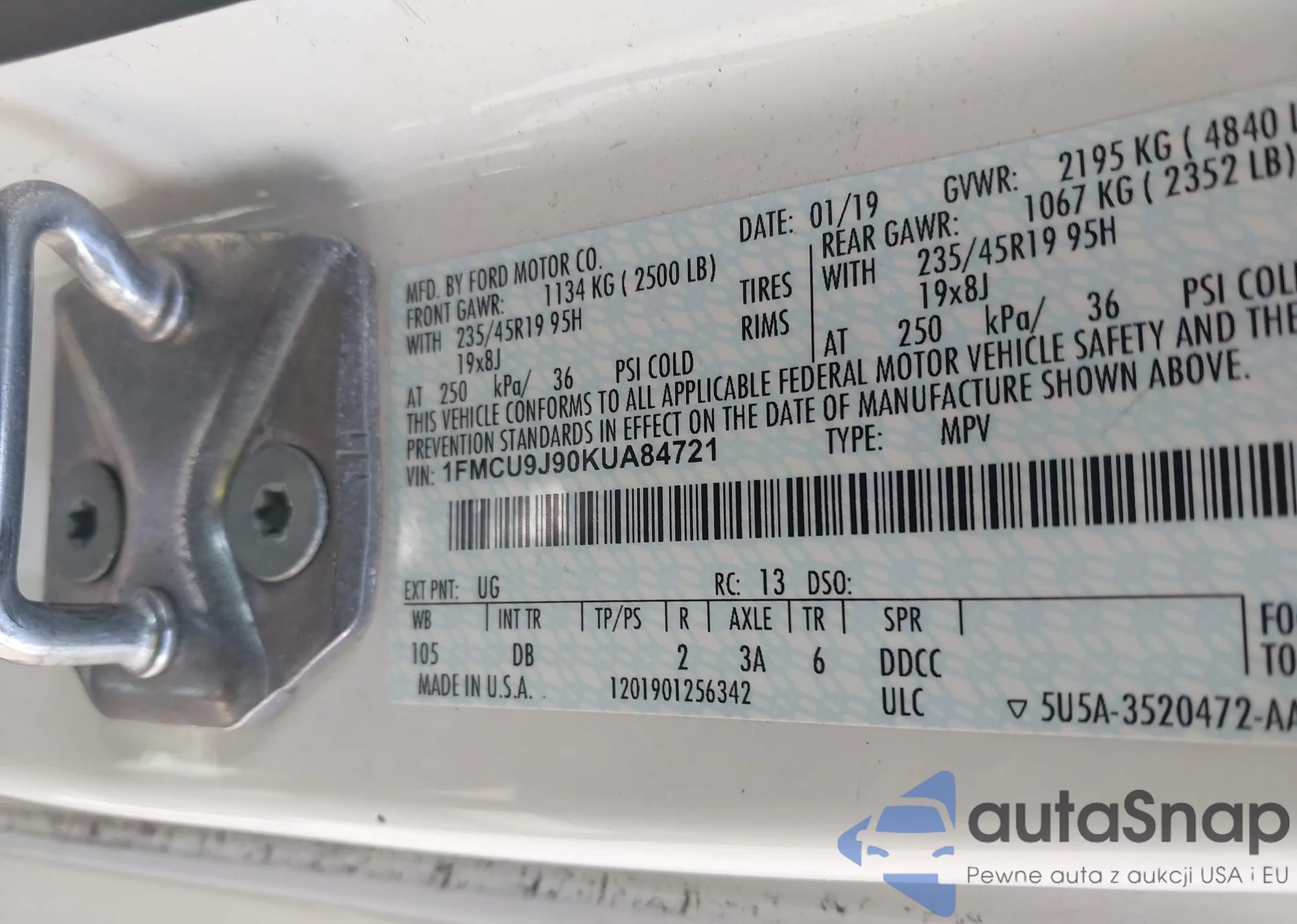 VIN: 1FMCU9J90KUA84721