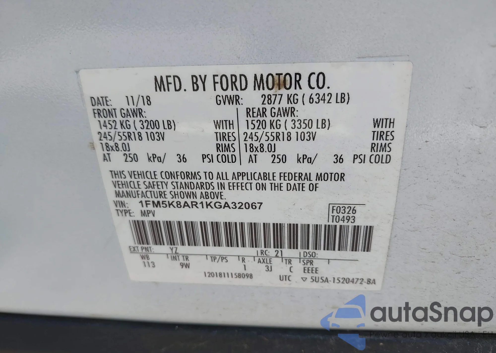 VIN: 1FM5K8AR1KGA32067