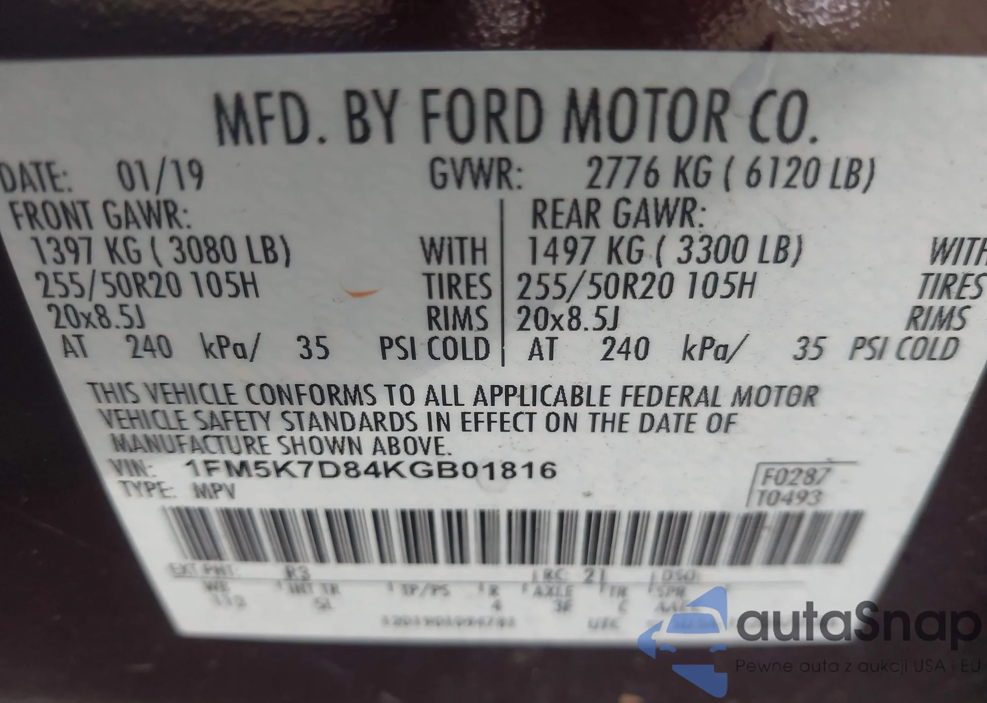VIN: 1FM5K7D84KGB01816