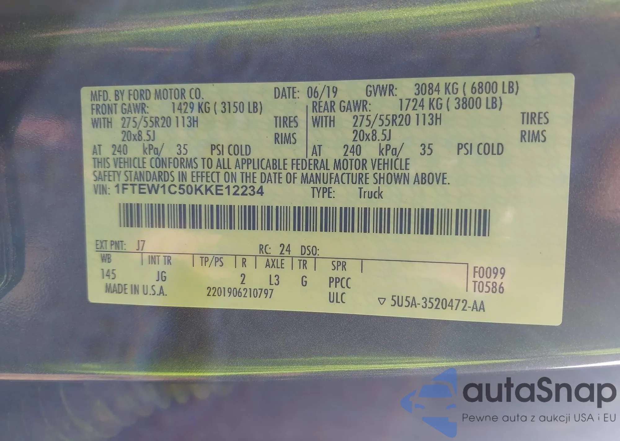 VIN: 1FTEW1C50KKE12234