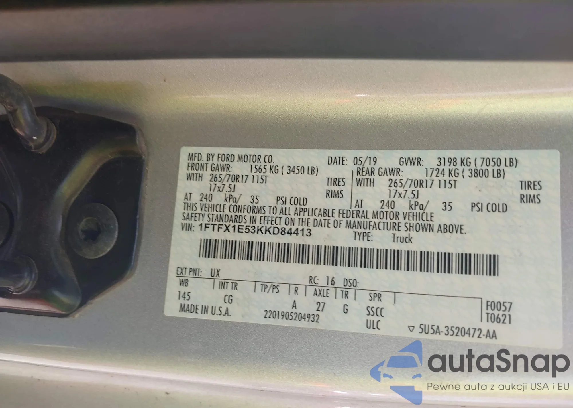VIN: 1FTFX1E53KKD84413