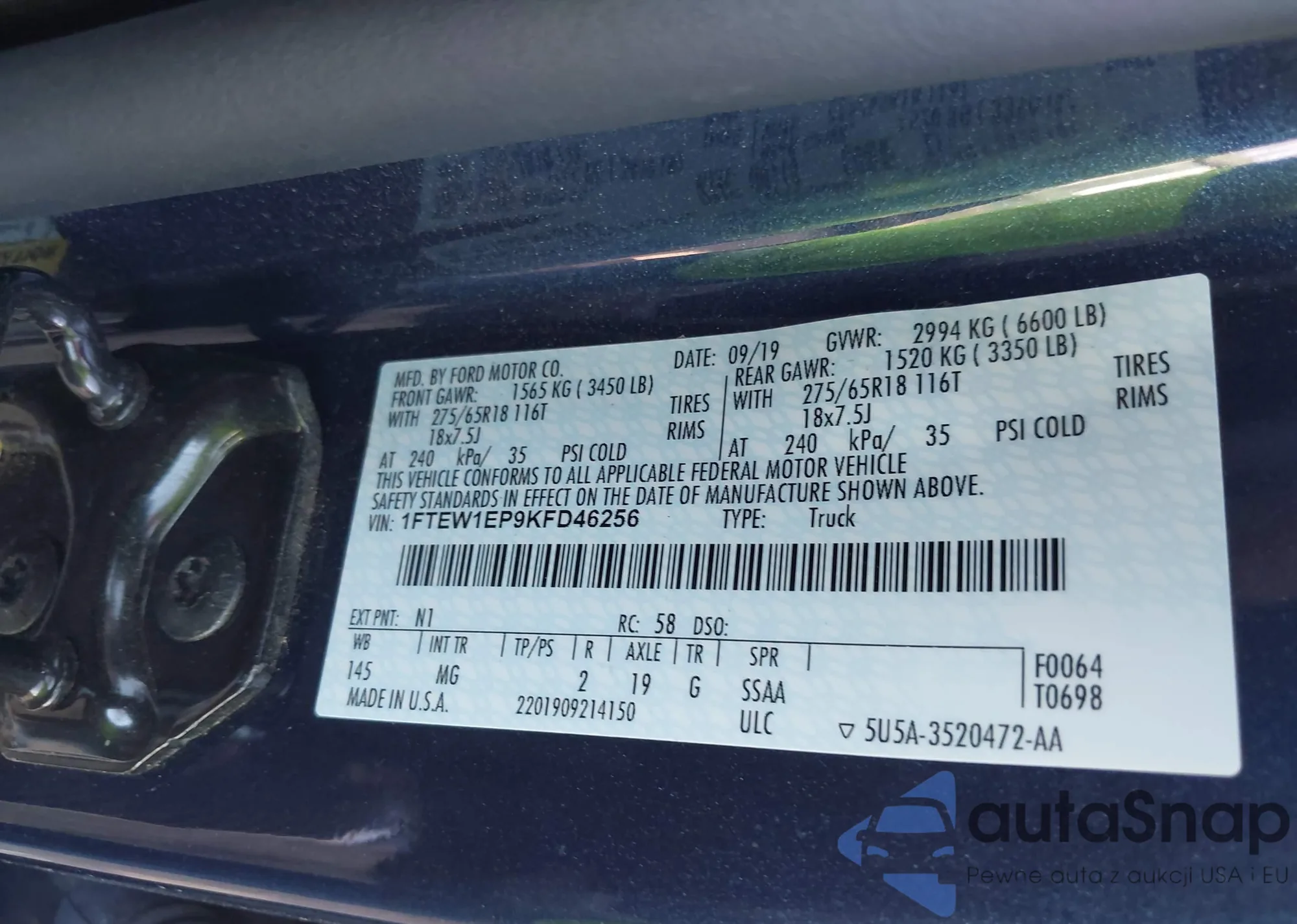 VIN: 1FTEW1EP9KFD46256