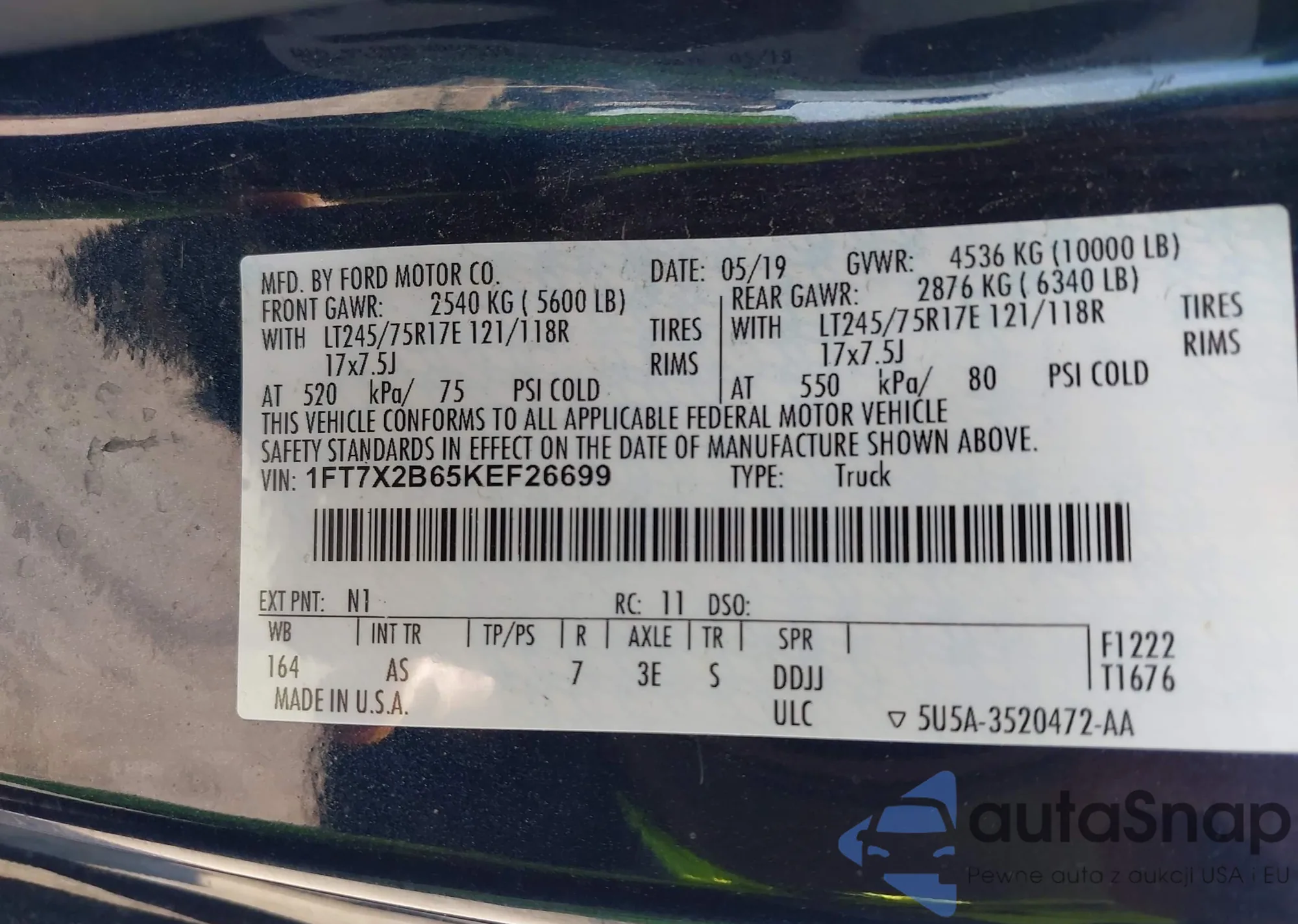 VIN: 1FT7X2B65KEF26699