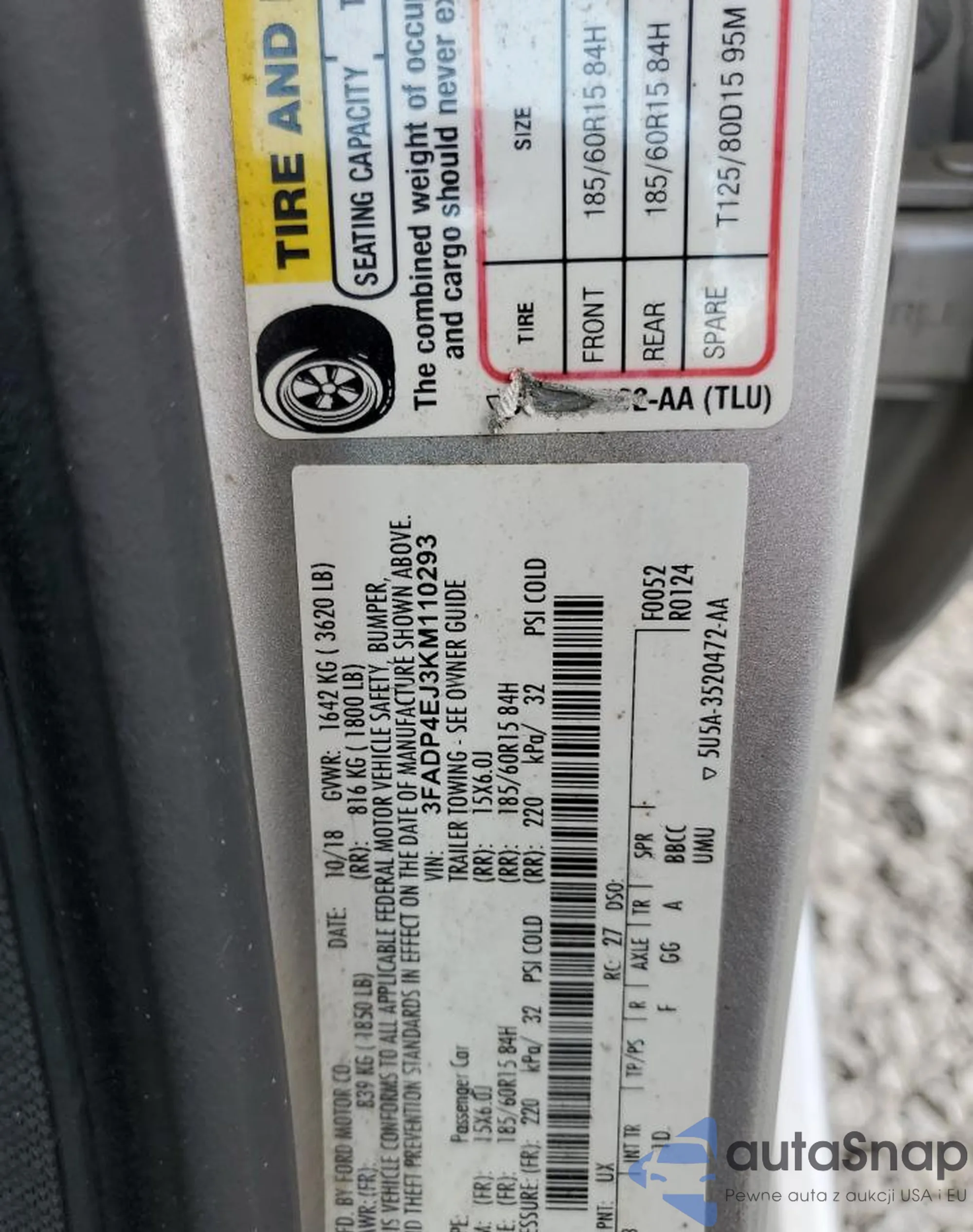 VIN: 3FADP4EJ3KM110293