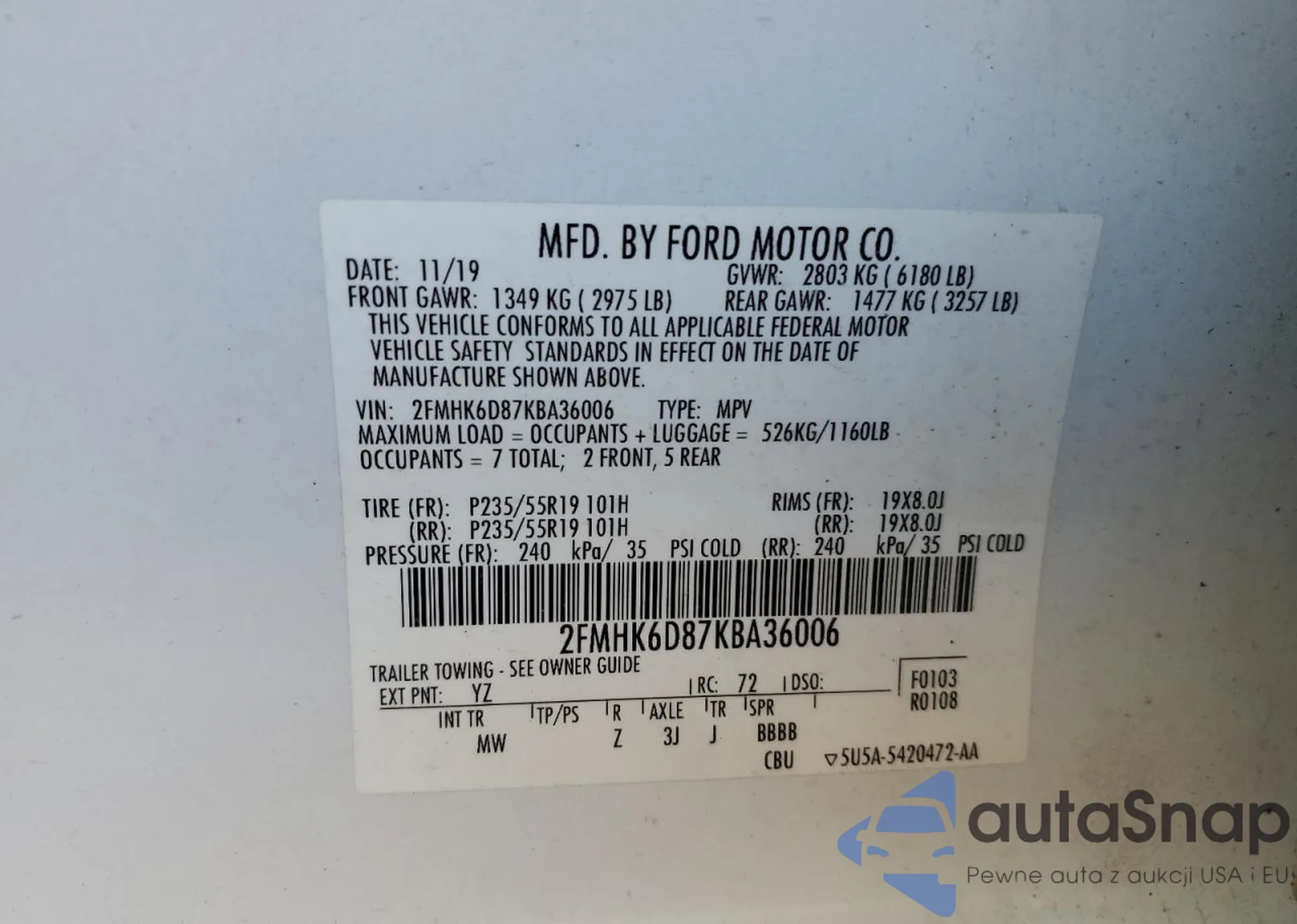 VIN: 2FMHK6D87KBA36006