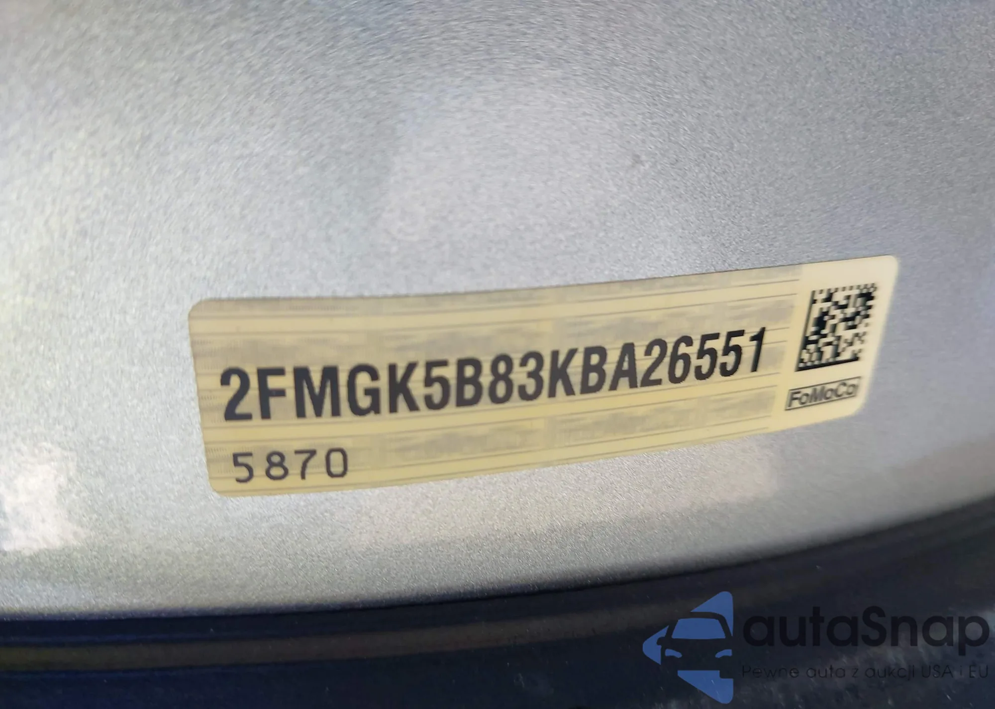 Samochód Ford Flex 2019 (VIN 2FMGK5B83KBA26551) nie był wcześniej licytowany. Dokumenty są czyste, przebieg odpowiada lub jest niższy niż średnia rynku. Sprzedaje go firma ubezpieczeniowa – polecamy zakup. Dostawa do portu zajmie ok. 6–8 tygodni.