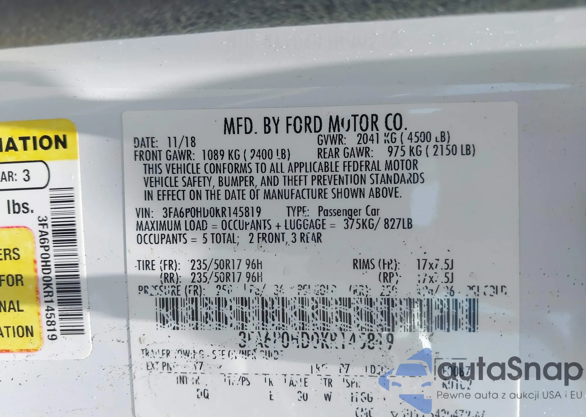 VIN: 3FA6P0HD0KR145819