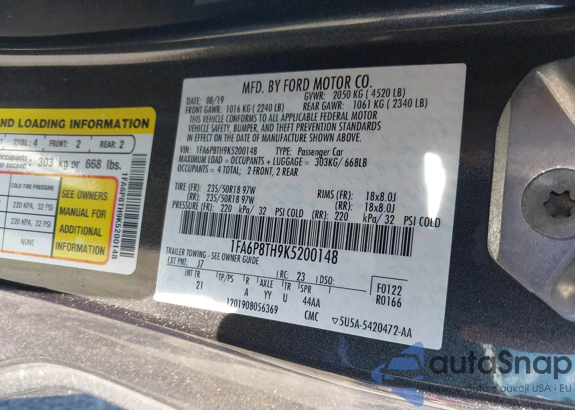 VIN: 1FA6P8TH9K5200148