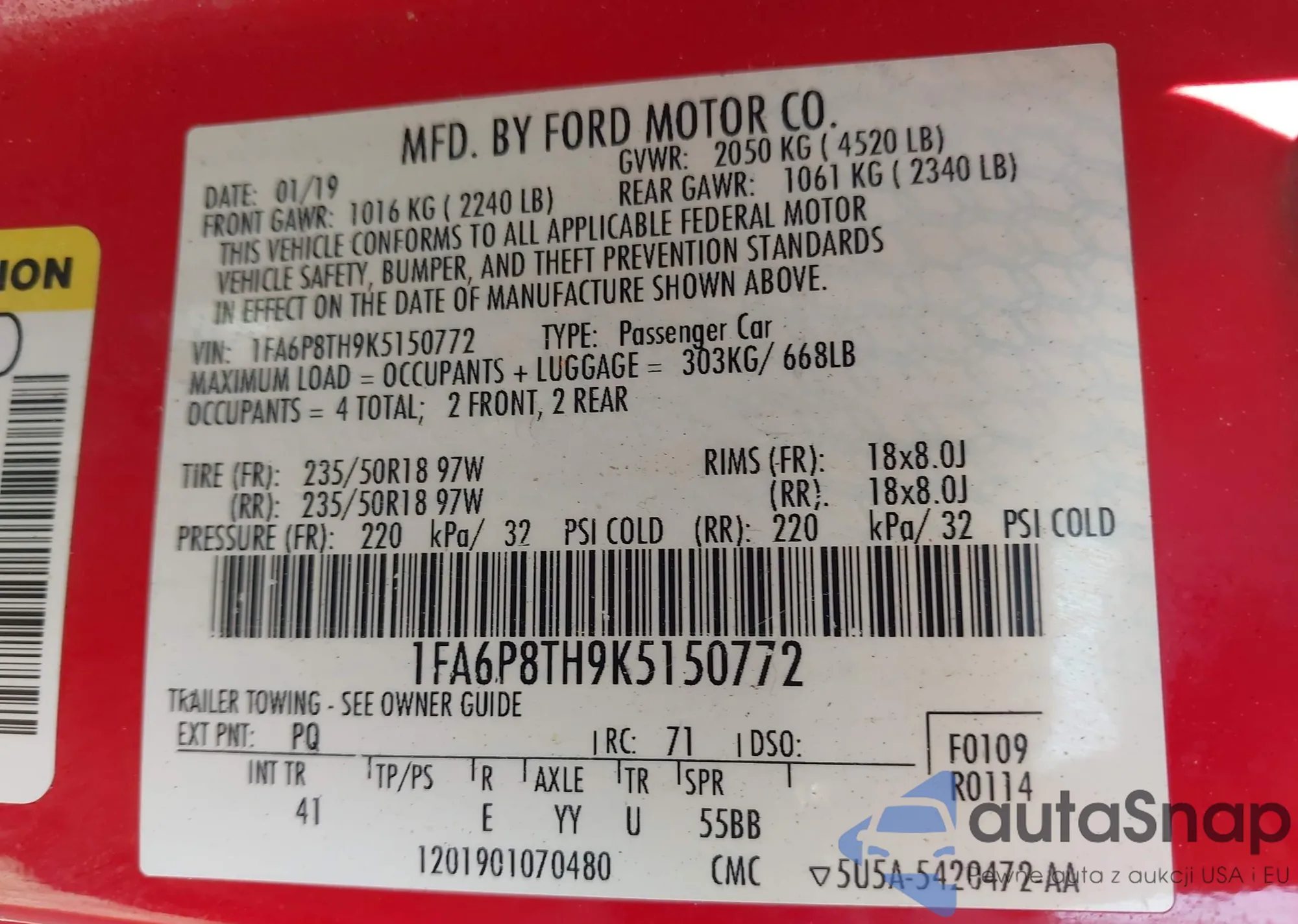VIN: 1FA6P8TH9K5150772