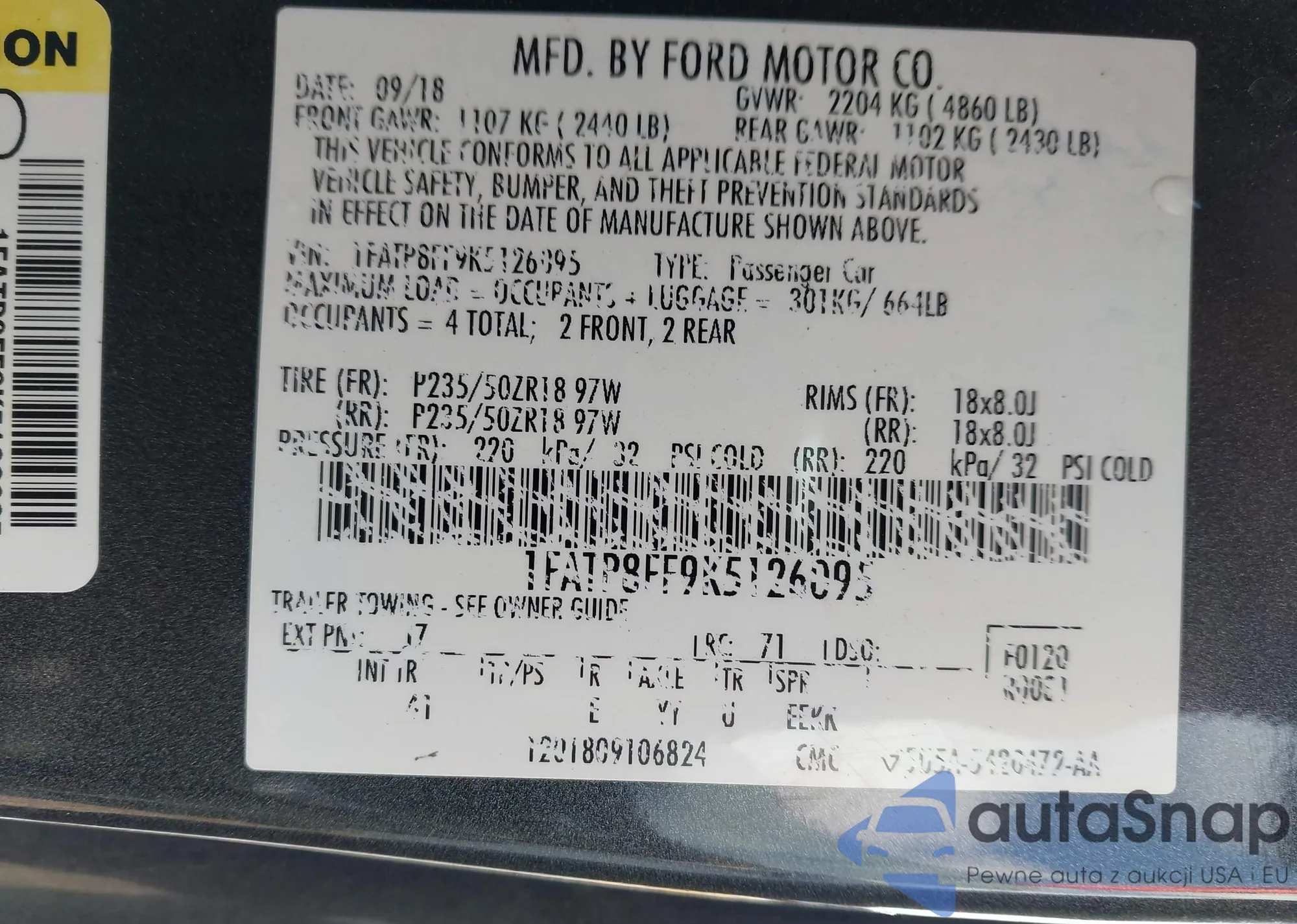 • VIN: 1FATP8FF9K5126095