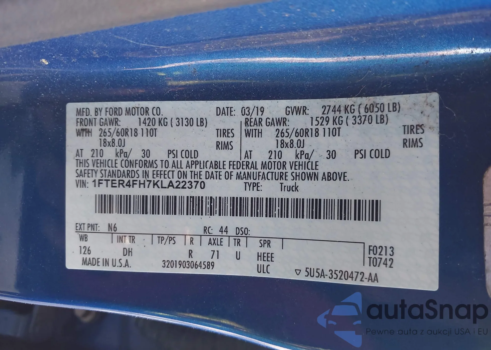 • VIN: 1FTER4FH7KLA22370