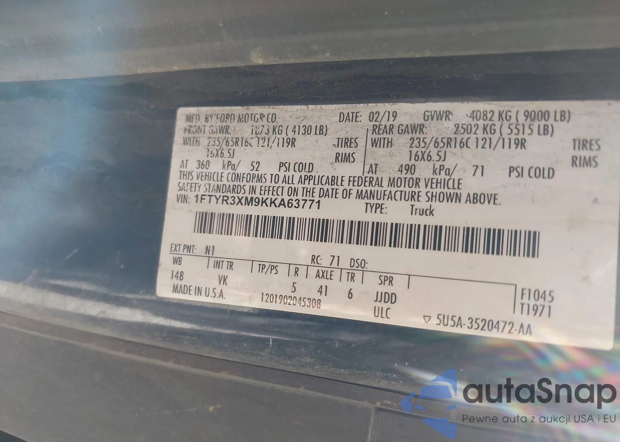 VIN: 1FTYR3XM9KKA63771