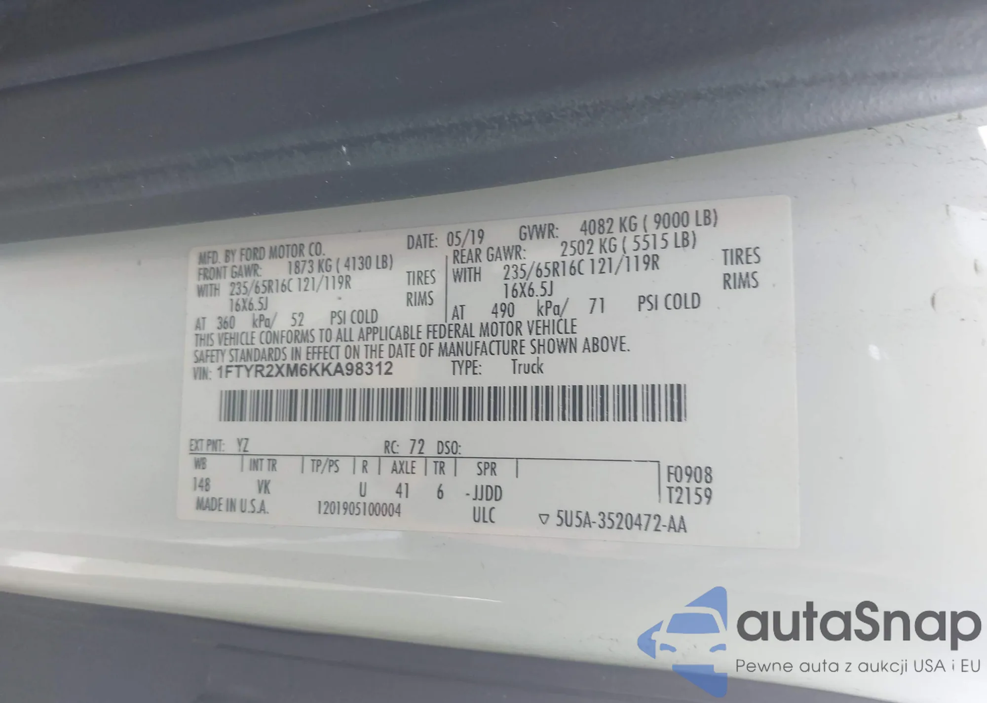 VIN: 1FTYR2XM6KKA98312