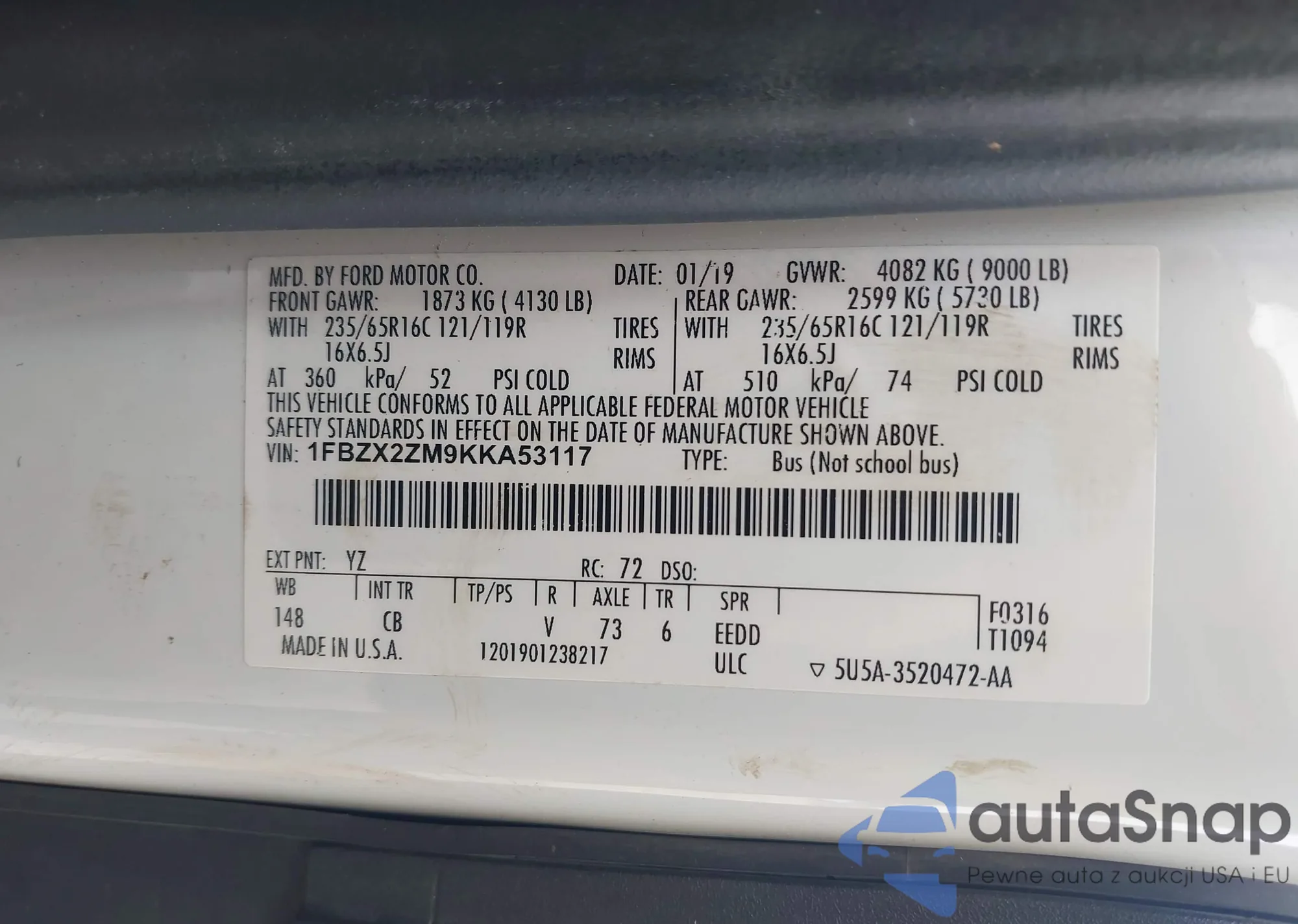 VIN: 1FBZX2ZM9KKA53117