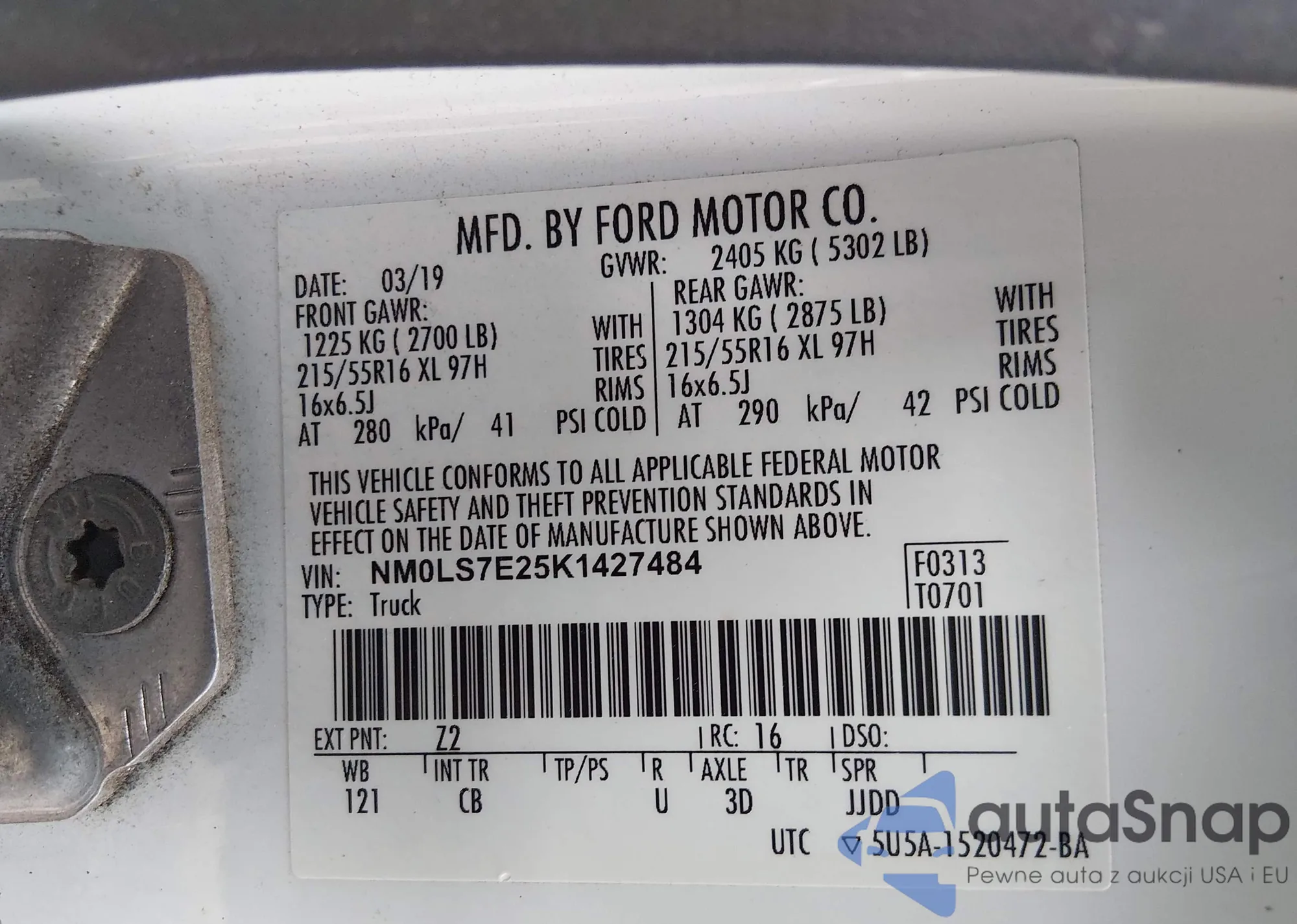 Samochód Ford Transit 2019 (VIN NM0LS7E25K1427484) nie był wcześniej licytowany. Dokumenty są czyste, przebieg odpowiada lub jest niższy niż średnia rynku. Sprzedaje go firma ubezpieczeniowa – polecamy zakup. Dostawa do portu zajmie ok. 6–8 tygodni.