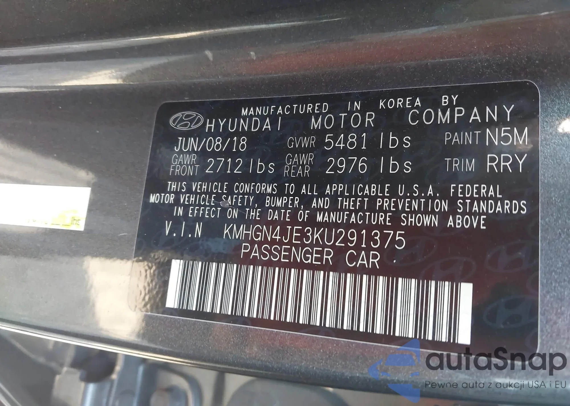 VIN: KMHGN4JE3KU291375