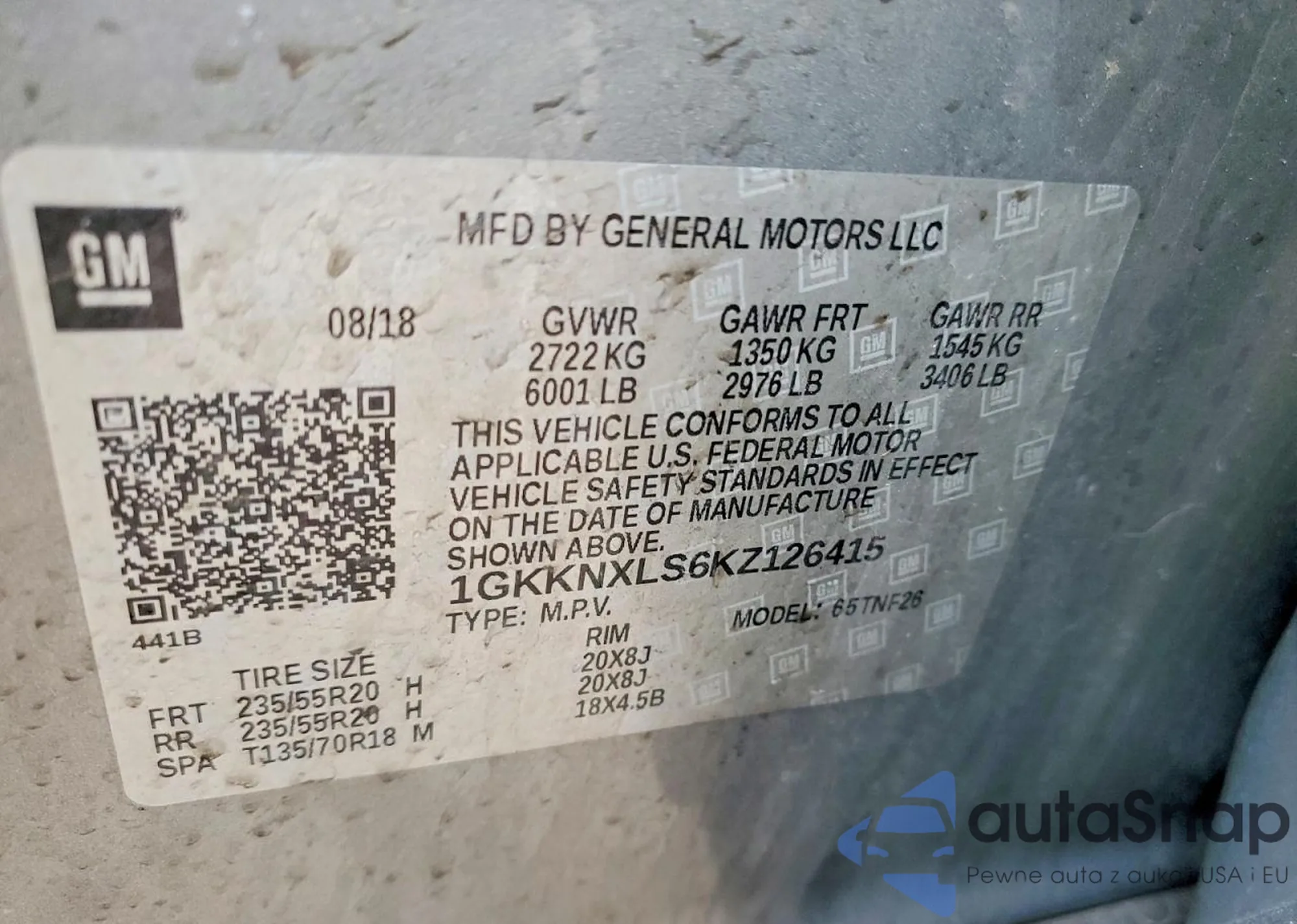 VIN: 1GKKNXLS6KZ126415