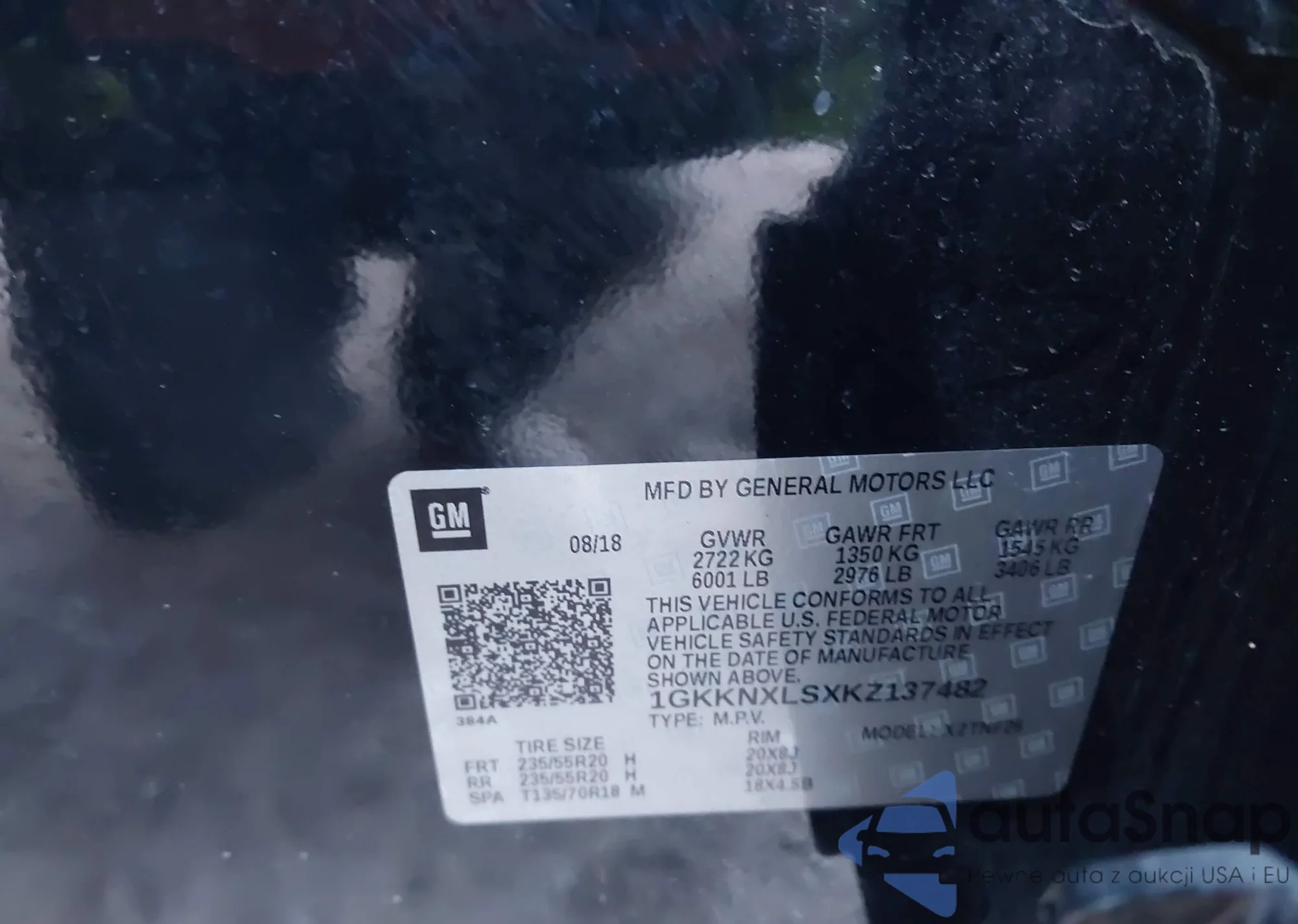 • VIN: 1GKKNXLSXKZ137482