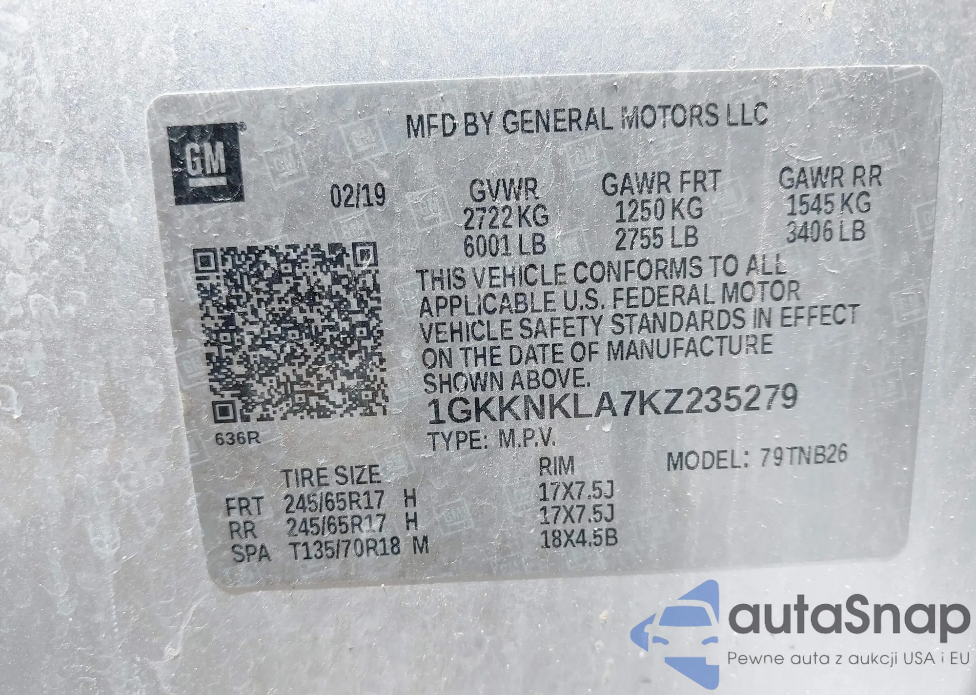 VIN: 1GKKNKLA7KZ235279