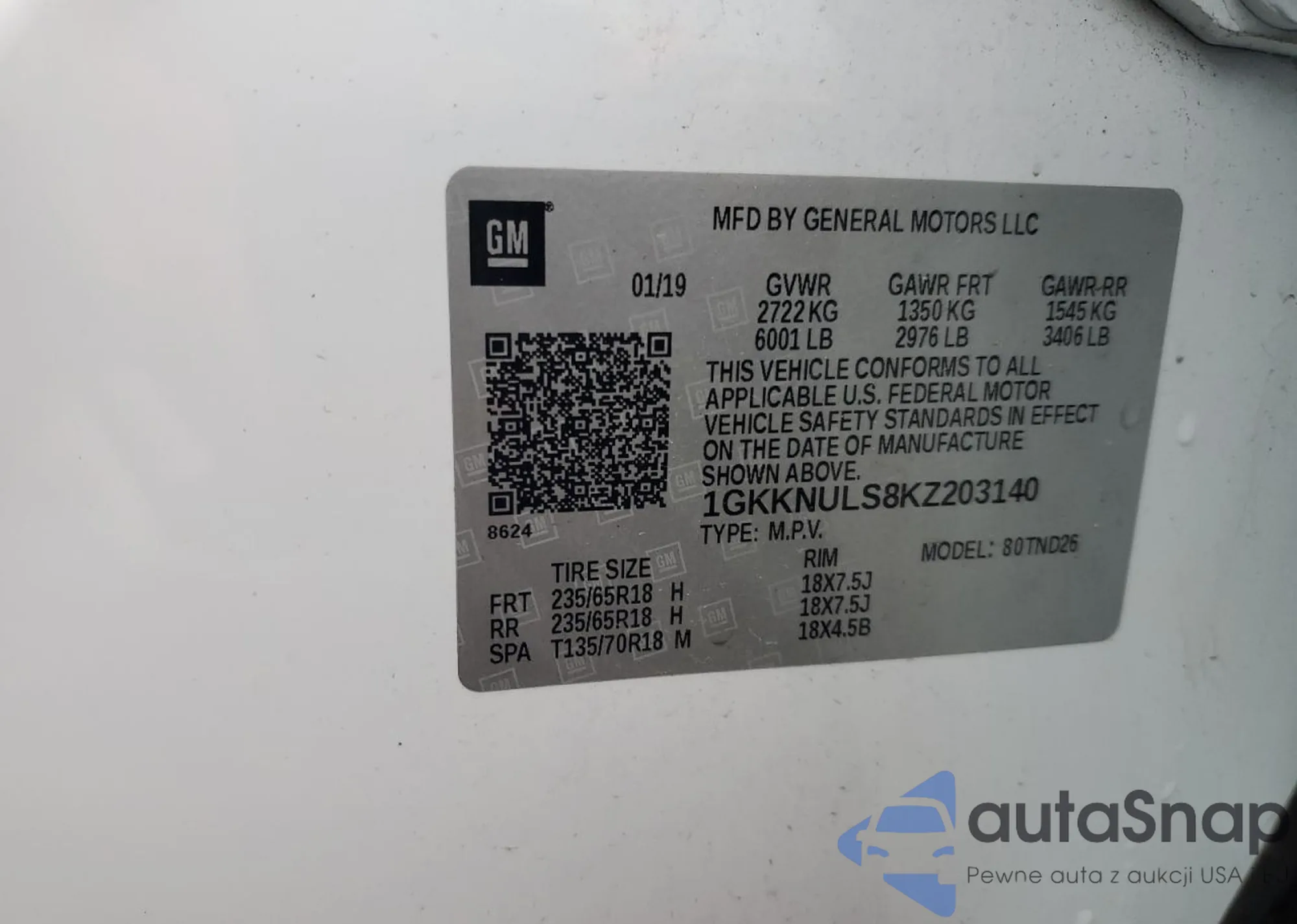 1GKKNULS8KZ203140 COPART