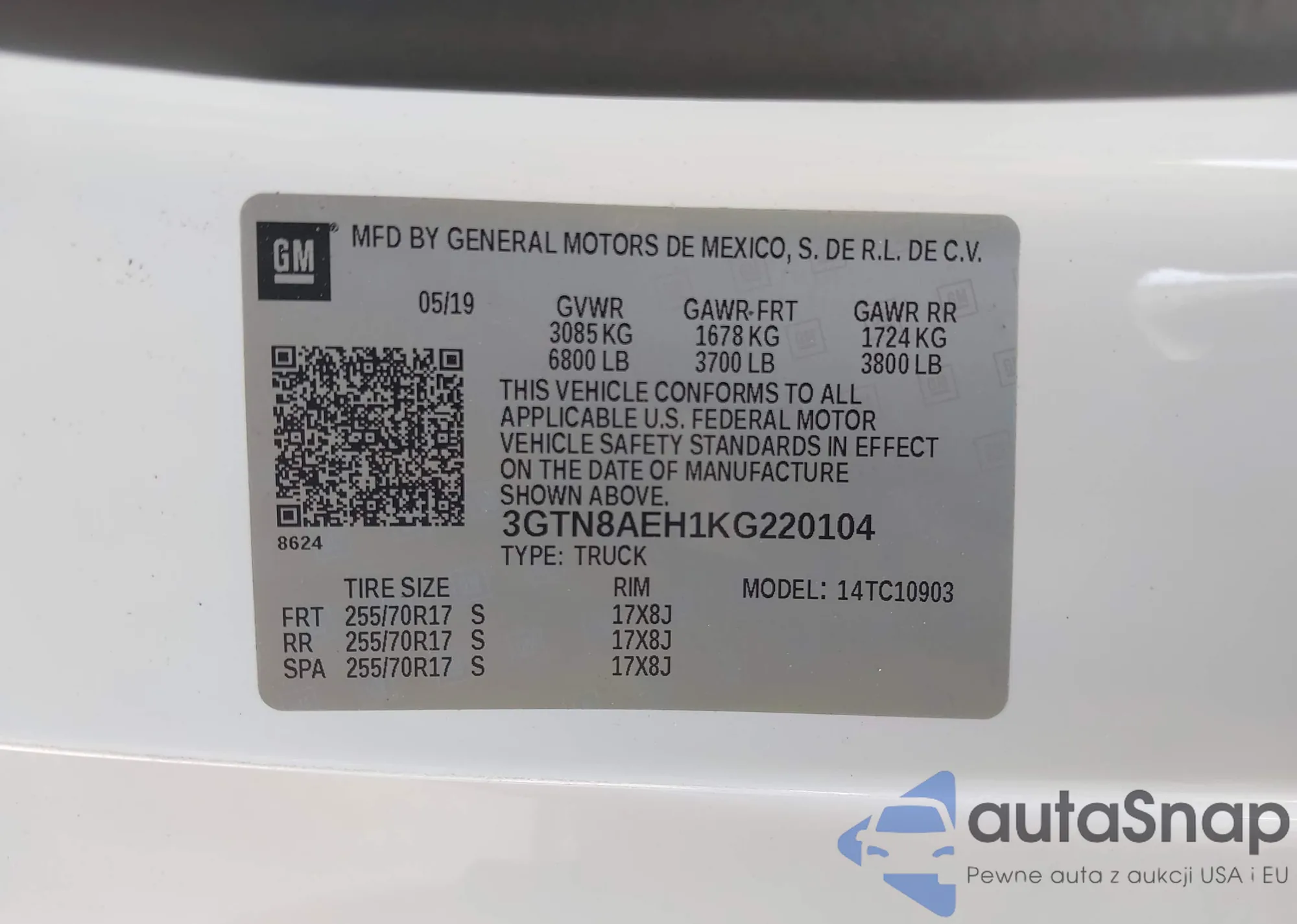 VIN: 3GTN8AEH1KG220104