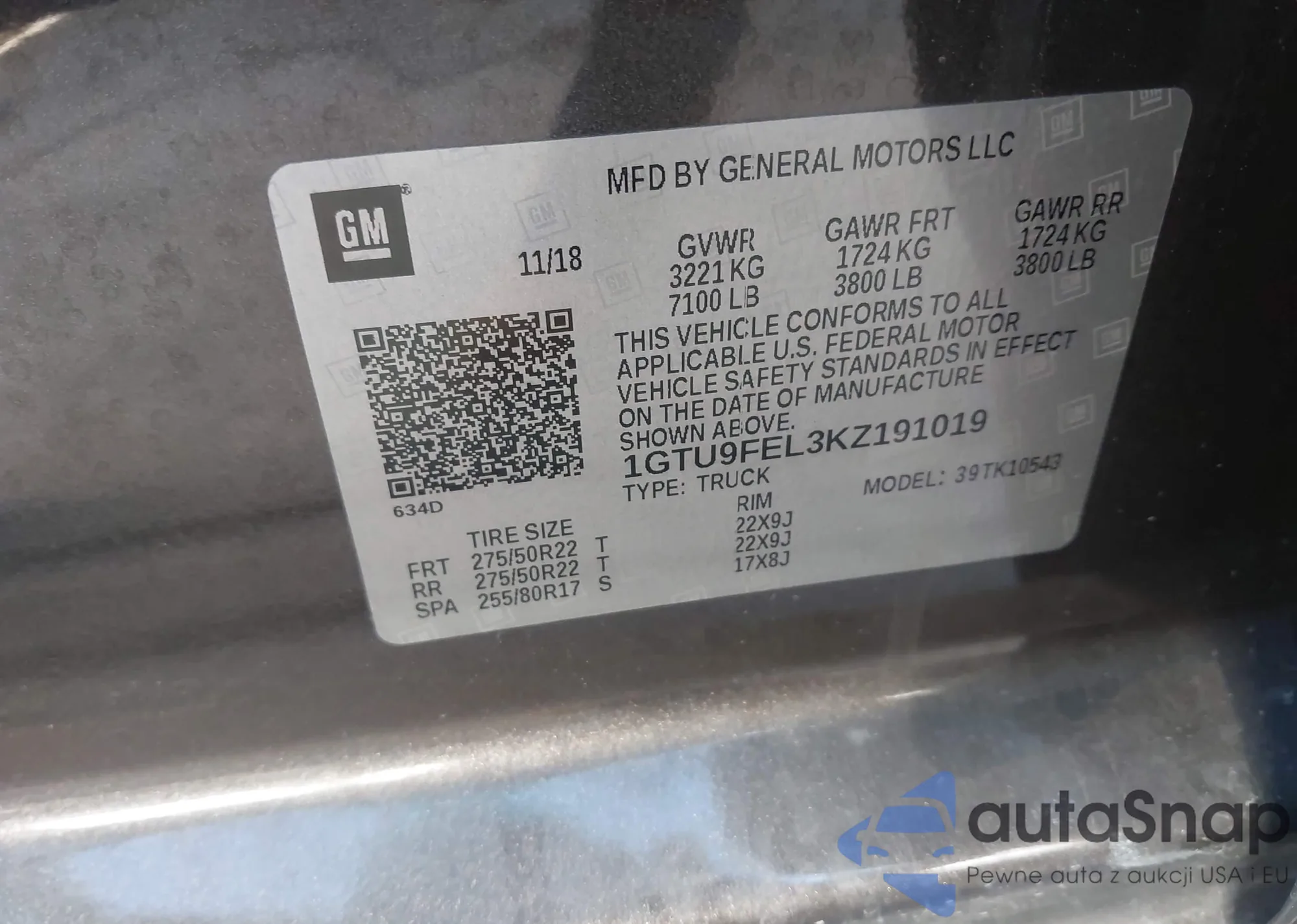 • VIN: 1GTU9FEL3KZ191019