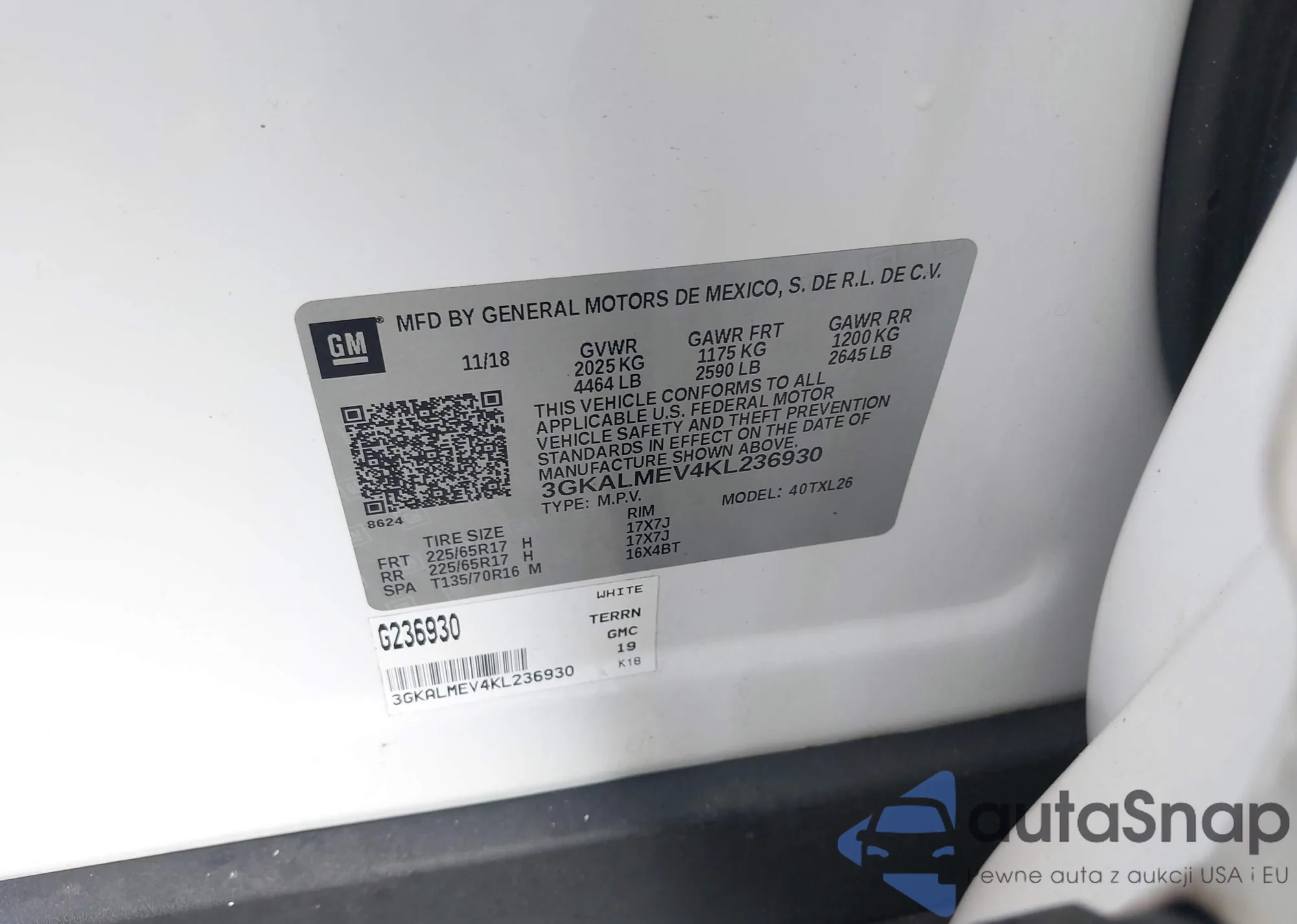 VIN: 3GKALMEV4KL236930