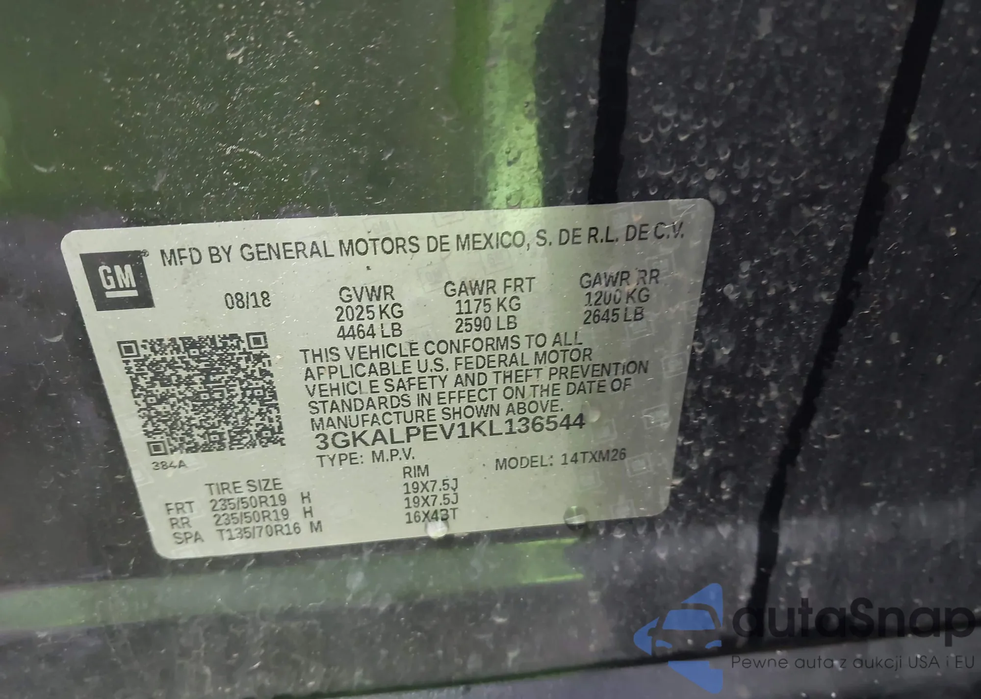 VIN: 3GKALPEV1KL136544