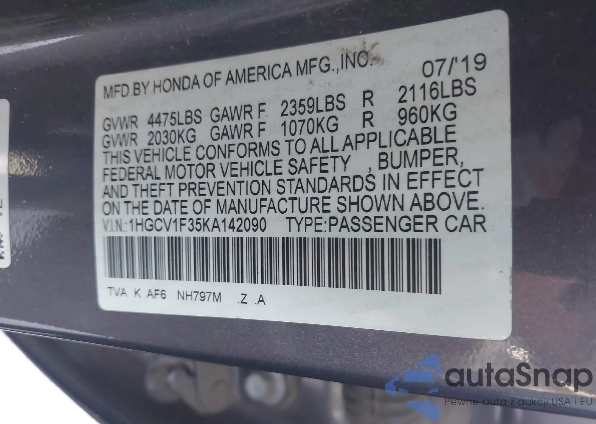 VIN: 1HGCV1F35KA142090